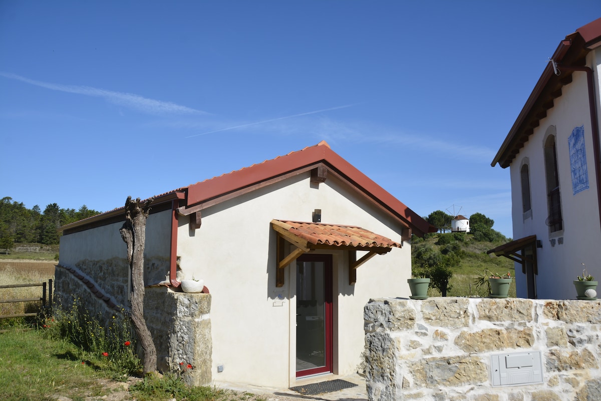 Disconnect and relax in this unique, stylish and restful accommodation. Located in the middle of nowhere you have silence and a breathtaking view: two mountains, a Portuguese moinho (mill), grape vines, walking and biking paths. A mini mercado and local cafe-restaurants, 3 km further is proof that you are not totally on your own in Ribeira de Alcalamouque. It is a half hour drive from Coimbra and Pombal. It is about 1,5 hours to go to Porto by car and 2 hours to Lisbon.