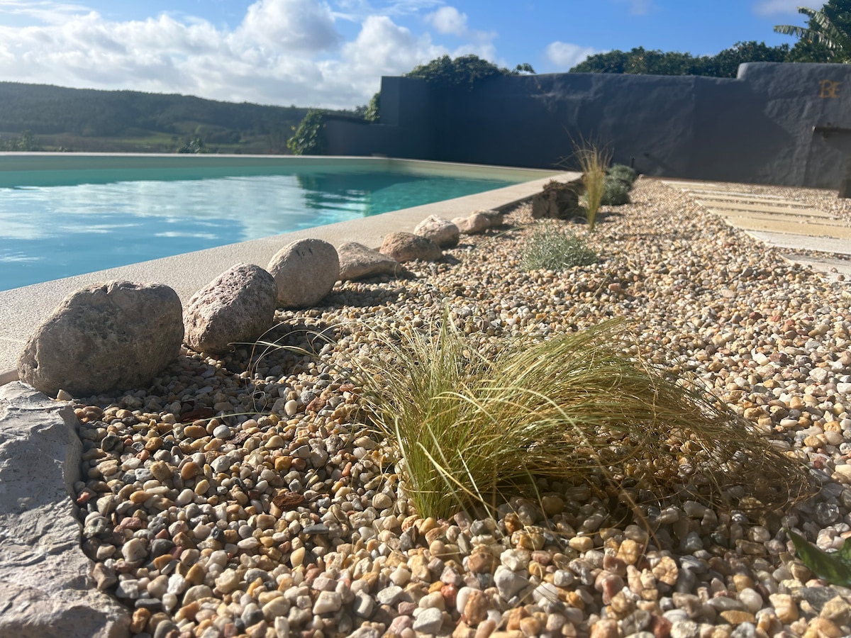 The perfect blend of comfort, luxury, and seclusion: Casa Do Vale, or "House Of The Valley" is a luxury 1 bedroom home in the heart of Central Portugal. Located at an altitude of 470m, the house boasts stunning views of up to 50 miles on a clear day. Recently restored to a high standard, the guesthouse comes complete with a private wood-burning hot tub (October-May) that can be a plunge pool in summer and a larger shared swimming pool that can be private upon request.