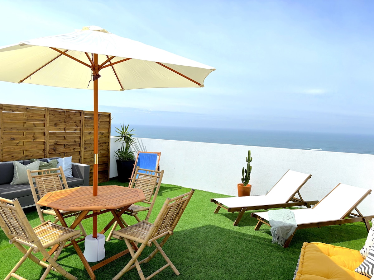 See the surfers from the living room! Unique apartment on top floor with the ocean right in front of you when entering the living room, and a private rooftop terrace providing with the most fantastic panoramic sea view overlooking Praia Do Norte (big wave view). See the morning surfers while having a breakfast, enjoy a day at the beach, and end the day with a glass of wine in the magical ocean sunset! Quiet area near to beach, surf, restaurants and everything that Nazaré has to offer!