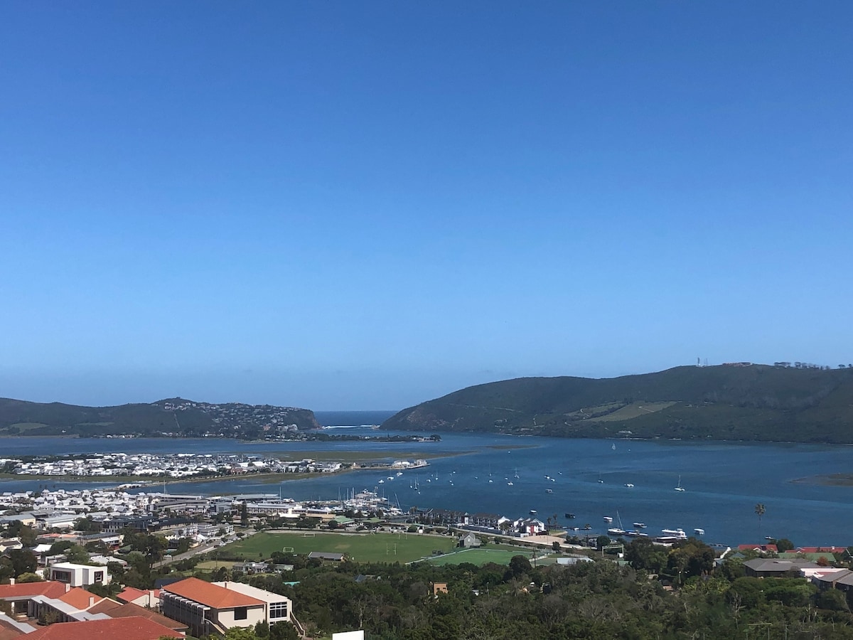 Panoramic view of old town and lagoon. Business travellers will love the freedom of no loadshedding and evening meals on their private deck. Walking distance to centre of town, Knysna Quays and lagoon. Positioned against the forest in a quiet cul-de-sac, a few blocks above the N2.