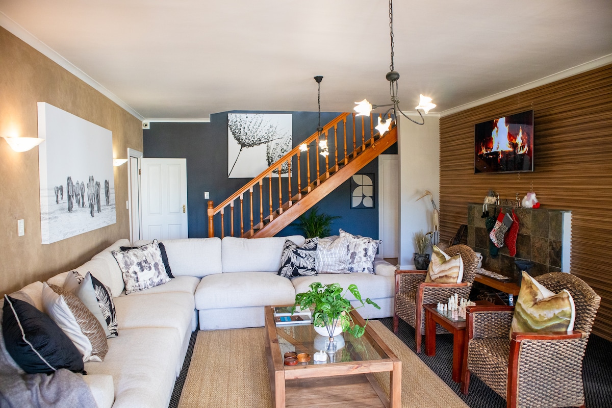 Welcome to the Waterfront Room, a cozy retreat in the heart of Knysna. Located within the Heart House guesthouse, it features one room— with a King size bed, plus a large private bathroom within the unit. A sleeper couch sleeps two kids under 12, and a small kitchenette that offers convenience for light meals. Surrounded by Knysna’s natural beauty, the Waterfront Room provides a peaceful, private escape with all the comforts of home.