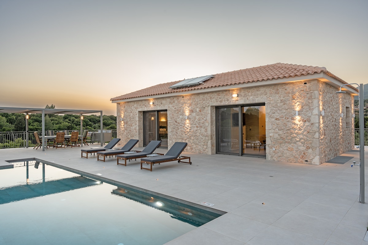 ✔ Daily maid service ✔ Private infinity pool ✔ STARLINK internet ✔ Peaceful location at the foothills of Mount Ainos The traditional stone-built villas offer the perfect setting for peaceful and relaxing holidays, where authentic local character blends seamlessly with refined luxury. Lithos Villas boast panoramic views of the crystal-clear Ionian Sea and are thoughtfully designed to combine elegant aesthetics with excellent functionality, creating truly unforgettable moments of relaxation.