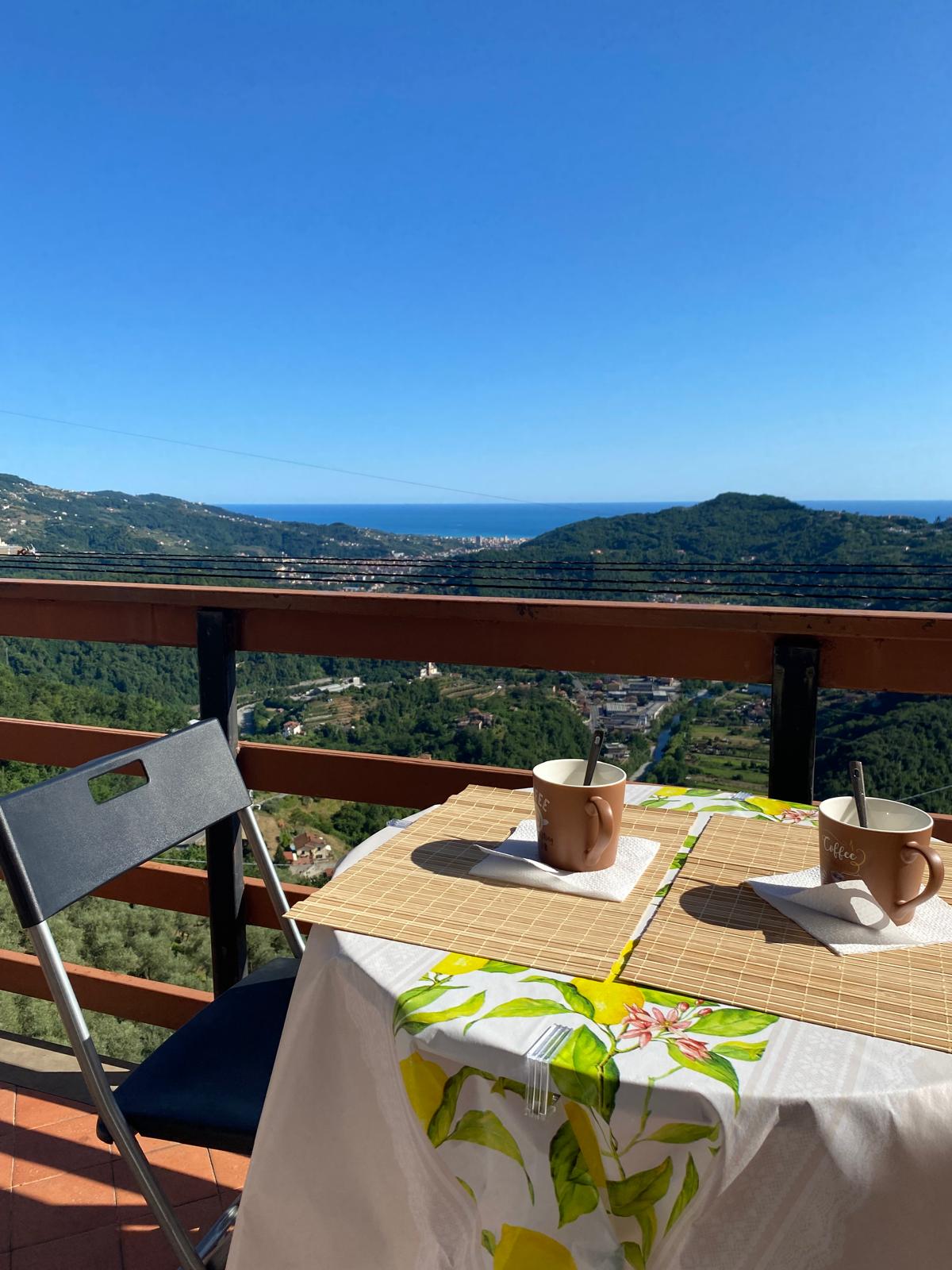 La casa è totalmente indipendente, immersa nel verde dell'uliveto ligure, con una vista mozzafiato sul Golfo Paradiso. Il panorama fruibile dalle terrazze e dalle finestre si apre dall'estremo ponente ligure al Monte di Portofino e nelle giornate limpide fino all'arcipelago toscano e la Corsica. Il mare (500 m.) Recco(1200 m.) il Parco Nazionale di Portofino(3km) sono raggiungibili oltre che in auto, anche a piedi con panoramiche passeggiate; Genova-Nervi dista 12 km (SS1 Aurelia)
