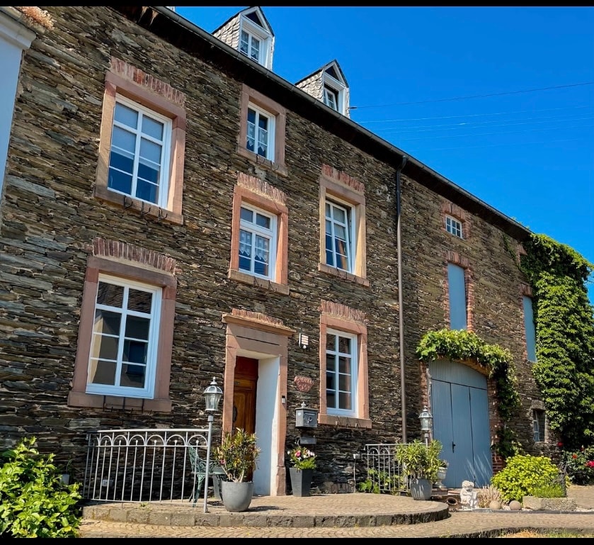 We didn't have the heart to tear down Grandma Hilde's house. So we renovated the house for 1 year and got as much charm as possible. Enjoy your own hideaway with a large sun terrace, the old half-timbered but modern facilities. The house is at the narrowest point of Starkenburg, so that you can enjoy the distant view towards the Mosel river and the beautiful Ahringstal. Available (fee): Breakfast in the café, e-bike hire, panorama sauna, wine sales