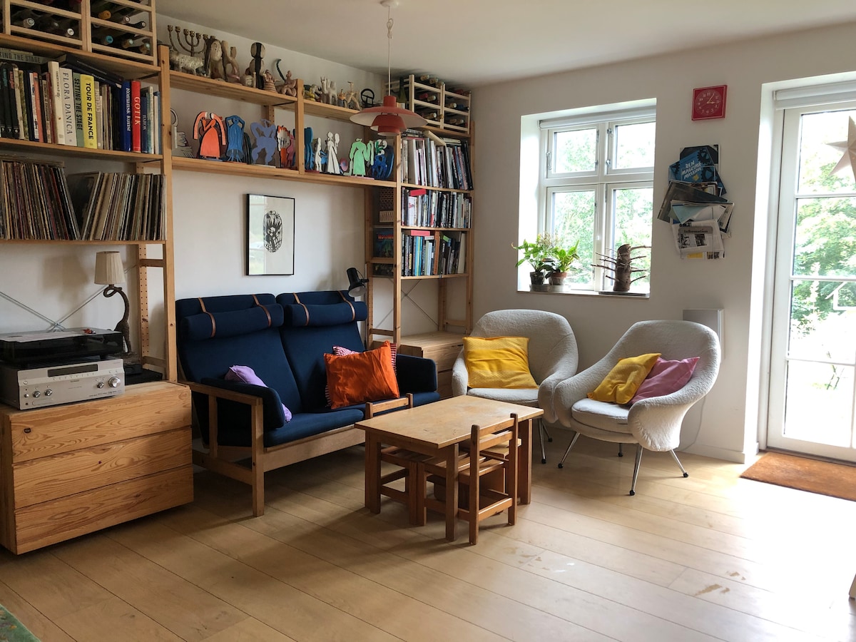 Our modern summerhouse is situated at Oroe in Isefjorden. The house lies on a 'hilly' plot owerlooking Isefjorden almost at the end of a gravel road. From the beach you can fish and swim. And then Oroe is only 1,5 hours drive from Copenhagen. If this house is booked, feel free to see our other house on Orø.