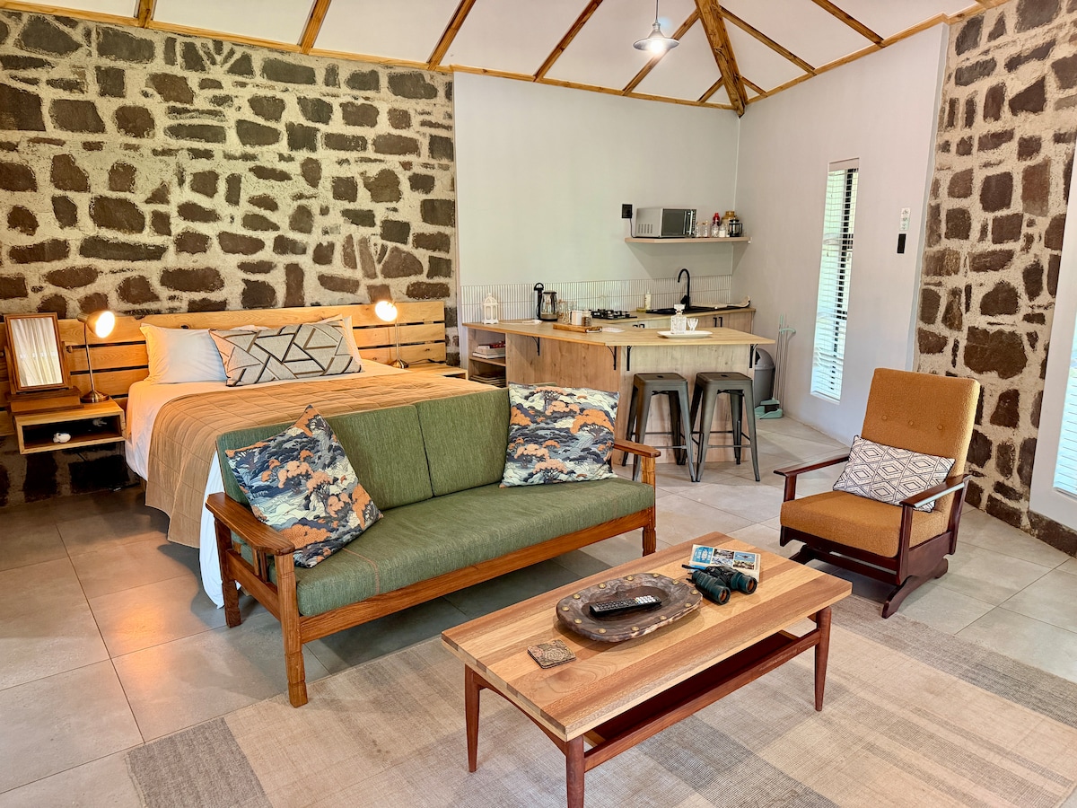 Set in a tranquil agricultural / equestrian environment, Endon Cottage is remote and stands alone yet it is secure and completely fenced with private automated gate entrance, so pets are also welcome. The entire Cottage is approximately 50m2 in size. There is one bedroom with a queen size extra length bed with an en suite bathroom comprising a shower, basin and toilet. There is an open plan kitchen, dining and living room. 1x covered parking. 1x covered patio.