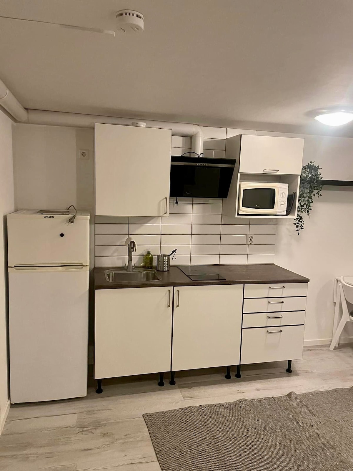 Bo på lugna området Norr i Växjö. Egen ingång till lägenheten i källaren med egen dusch, wc och väl utrustat kök med porslin och bestick . Bra bussförbindelser till Centrum och Universitet. Ca 20 meter till busshållplats. 2 rum varav 1 stort vardagsrum med eldstad och ett stort sovrum. Ca 50 kvadratmeter Totalt. Nyrenoverade utrymmen med wc, tvättstuga, dusch, kökspentry med tvättställ, spis, fläkt och kylskåp. Sängkläder och handdukar finns. Vi har minibar med mat, tilltugg och dricka