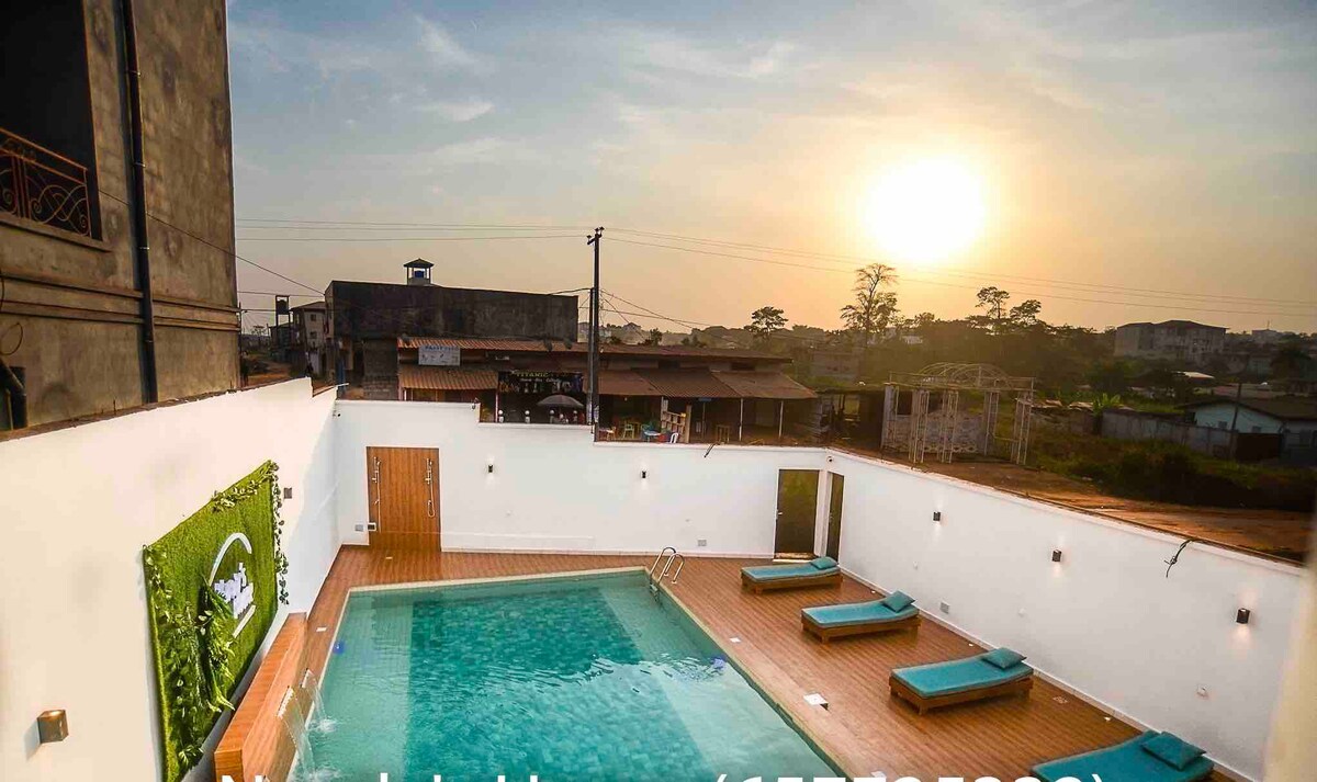 Ce logement paisible situé à "Emana-Pont" offre un séjour paisible pour toute la famille. Une magnifique vue sur la piscine, sur les montagnes et sur le stade Olembe. Idéal pour les courts et longs séjours avec ménagères, restaurant et salle de massage. Une voiture offerte avec chauffeur inclus (10euros en plus). Possibilité de réduction hors véhicule. NB: TOUS LES CLIENTS SONT RÉCUPÉRÉS GRATUITEMENT A L'AÉROPORT OU A L'AGENCE DE VOYAGE DE DÉBARQUEMENT A YAOUNDÉ SUR DEMANDE.