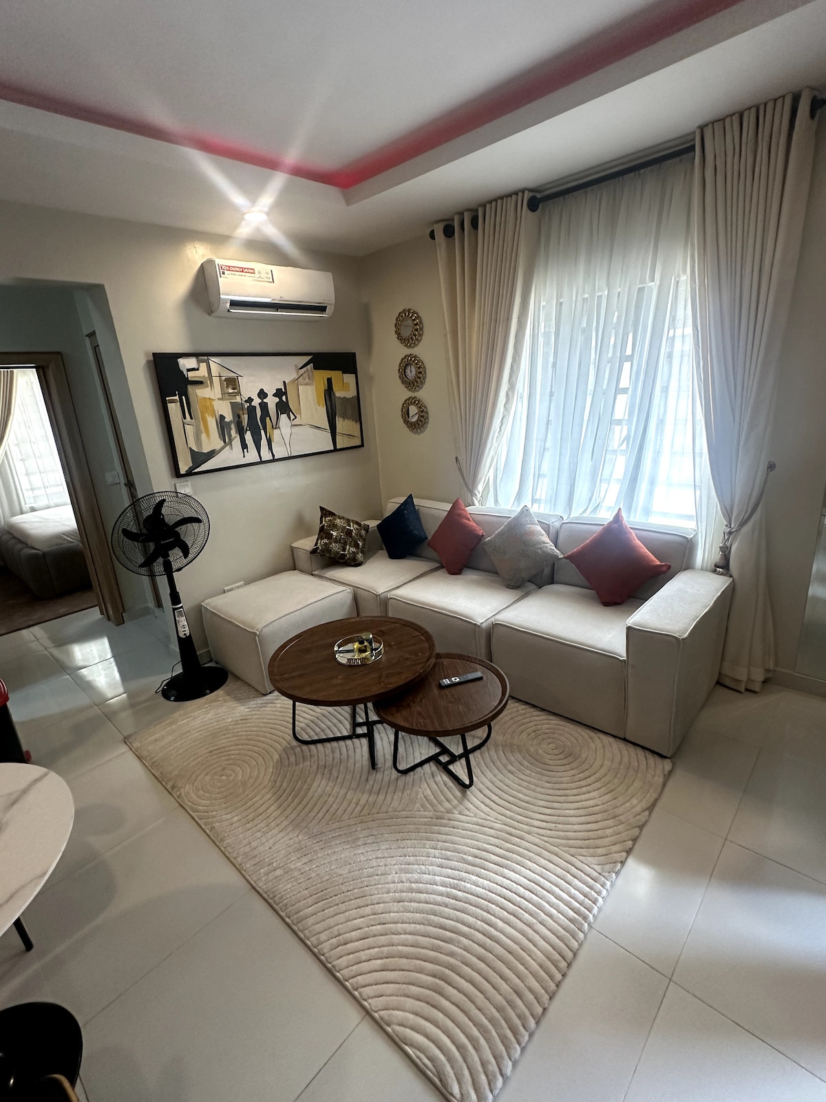 Enjoy premium comfort in this beautifully furnished 2bedroom apartment within a serene gated estate with 24/7 security. Just off the Lekki-Epe Expressway, it’s close to restaurants, nightlife, supermarkets, salons, and gas stations. The space features a luxurious yet functional design, spacious living, a fully equipped kitchen, comfy mattresses, high-speed internet, and a smartlock for added convenience.