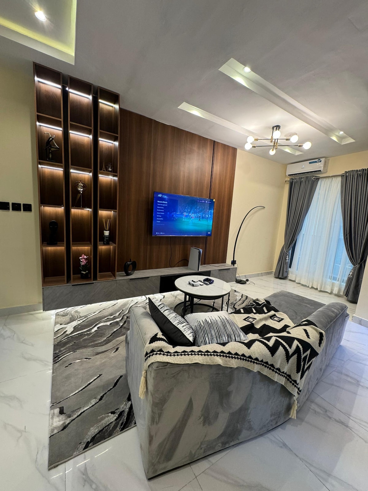 -New and fresh -24 hours power supply -Gym -PS5, unlimited and fast Wifi, Amazon prime, Netflix and dstv -House Keeping -Secured and serene estate -Clean water -spacious balcony -very close proximity to Leisure sports Park(basketball, football, long tennis and paintball) No get together or parties allowed( 2 guests max)