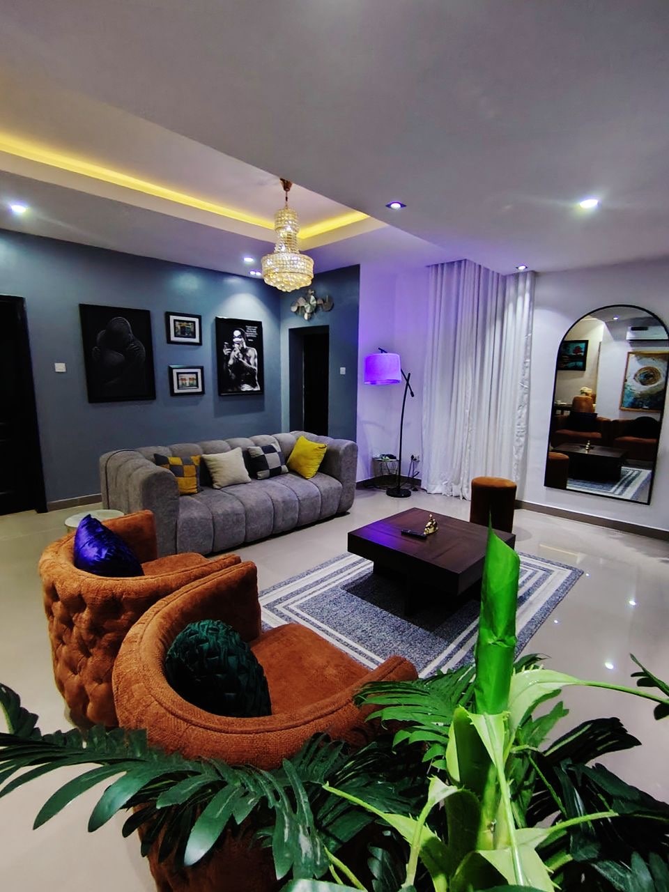 Escape to comfort in this stylish 4-bedrooms, 4.5-bath apartment in Oniru Estate, Victoria Island, Lagos. Enjoy a spacious living room with soft sofa, AC, Wi-Fi, Smart TV with Netflix, and a cozy dining area. The fully equipped kitchen has everything for home-cooked meals. Each ensuite bedroom offers comfort and privacy. Perfect for families, business travelers, or groups seeking luxury, convenience, and 24/7 security in one of Lagos’s most sought-after neighborhoods.