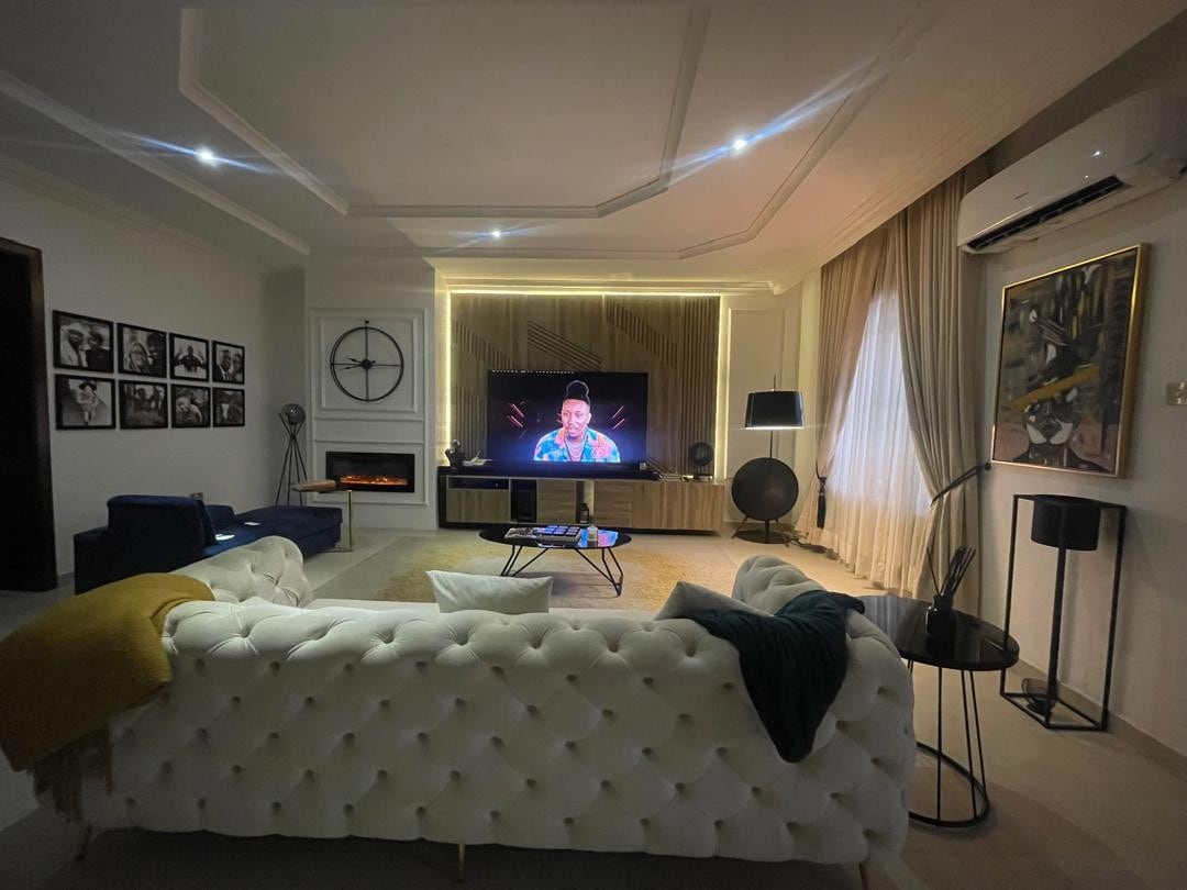 Welcome to TD Luxury Suites, where luxury meets convenience in Lagos. This stylish 4-bedroom apartment offers 24/7 electricity, fast internet, and chic decor for a sophisticated stay. With 24/7 security in a gated estate, you can relax after exploring nearby attractions like movie theaters, shopping malls, restaurants, and bars. The overall decor exudes a trendy and sophisticated style, creating an inviting atmosphere that's perfect for unwinding after a busy day exploring the vibrant city.