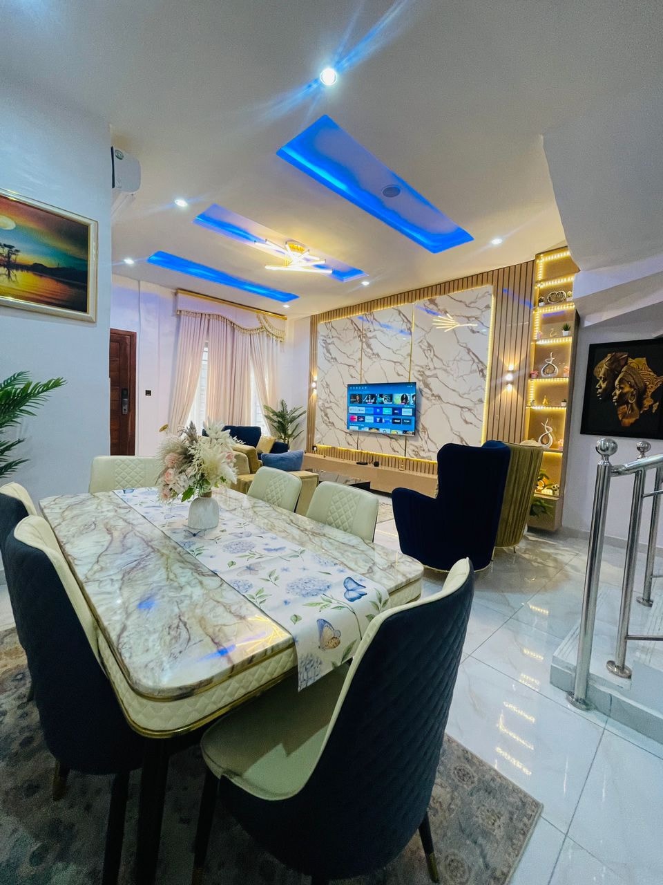 Indulge in the luxury and comfort of this stunning 4-bedroom duplex located in the heart of Lekki, a serene, secure, and easily accessible neighborhood just seconds from the Lekki-Epe Expressway. Designed to impress, this home is perfect for group vacations, business travelers, family getaways, or long stays. Every detail has been carefully curated to offer you a 5-star living experience in Lekki, Lagos. This home gives you the perfect mix of luxury, entertainment, privacy, and convenience.