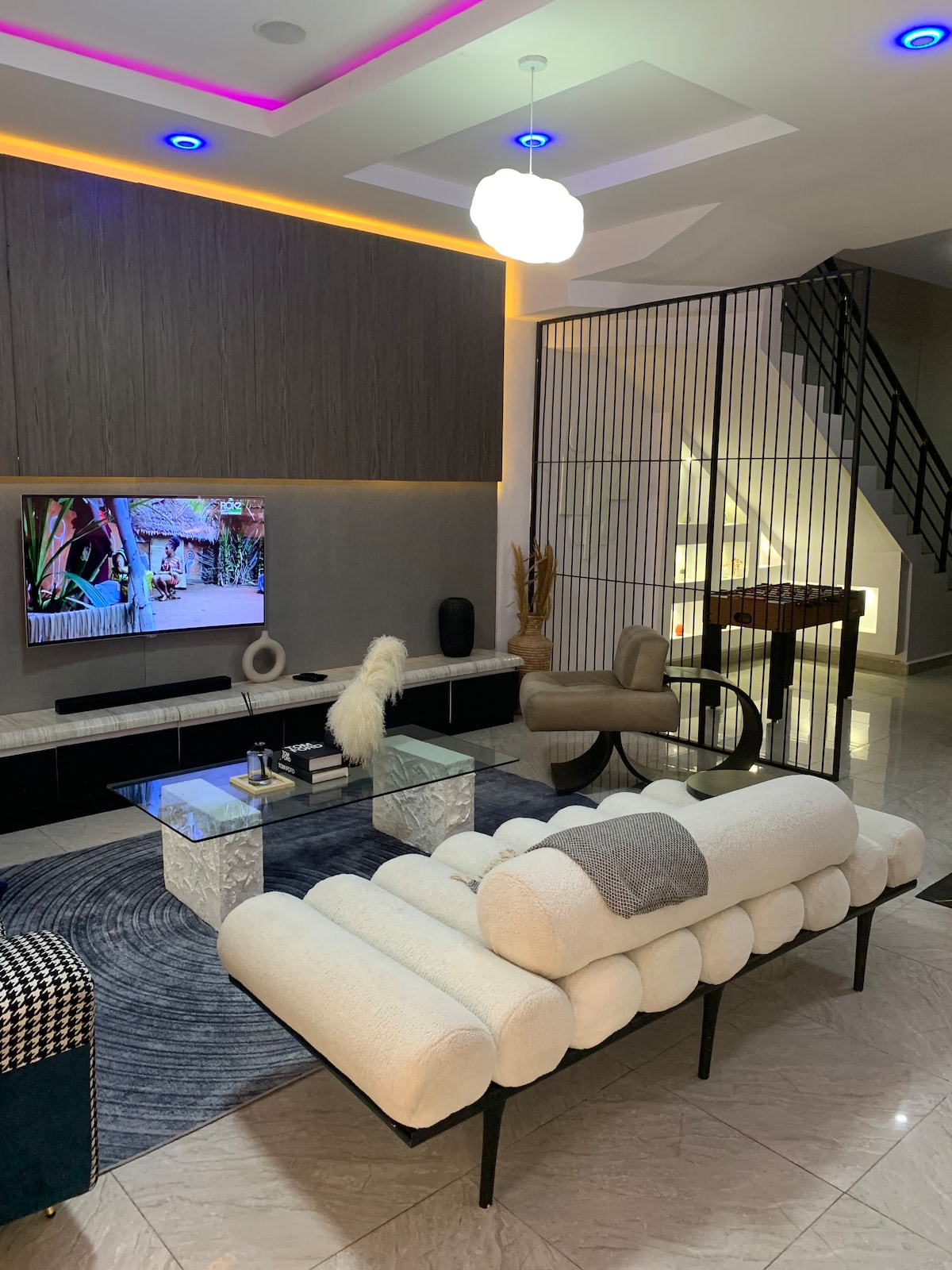 Our beautiful 4-bedroom duplex is located in the serene and secure Lekki Palm City Estate, Offering a perfect blend of comfort, elegance and functionality. The apartment boasts a breathtaking lake view that brings peace and calm, making it ideal for both relaxation and work-from-home stays. With 24/7 electricity and wide range of amenities to cater to your needs, our home guarantees a seamless and enjoyable experience. everything is in place to make your time absolutely unforgettable.