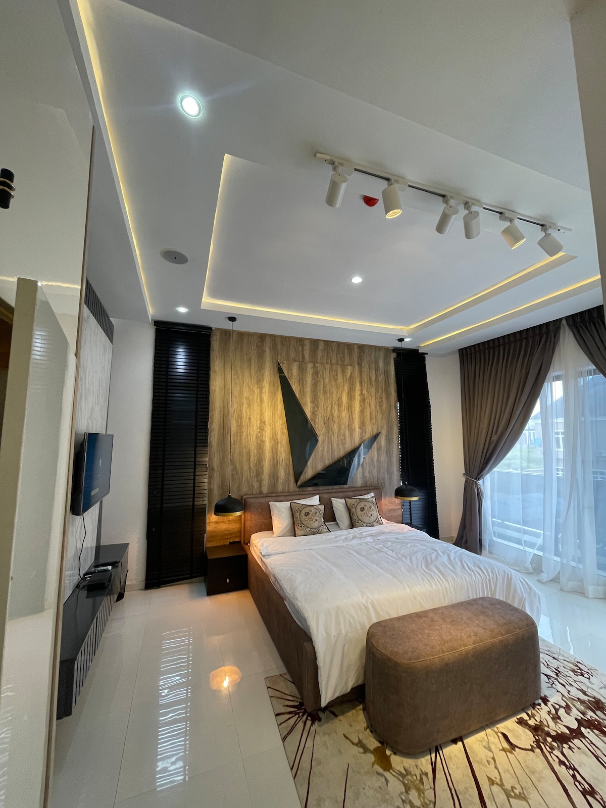 Well furnished suite, in a serene and well secured environment (Lekki Gardens Phase 3). Directly behind Lagos Business School (a walking distance) off the Lekki-Ajah road. The room is en-suite with TV (Cabled), Fridge, Electric Kettle and Tea Condiments.