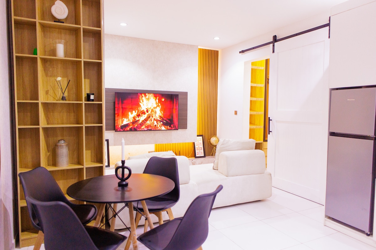 Welcome to Studio Haven, a cozy urban retreat in the heart of the city! This stylish studio apartment blends modern comfort with warm, inviting vibes. Enjoy a plush bed, soft linens, and a compact yet fully equipped kitchenette. The living area features a smart TV and free Wi-Fi, perfect for relaxing or working. Steps from vibrant cafes, shops, and transit, this haven offers the perfect base for your city adventure right in the heart of Lekki phase 1