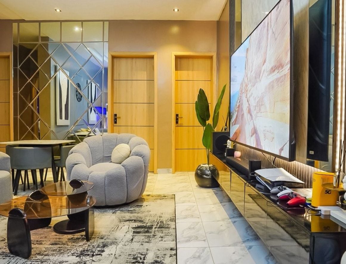 Luxurious mini flat in Eleganza Gardens, opposite VGC! Fully furnished with modern amenities: AC, Wi-Fi, flat-screen TV with Netflix/YouTube, equipped kitchenette, and spacious bathroom. Enjoy 24/7 electricity, water, security, private parking, and a swimming pool. Perfect for short or extended stays, this stylish retreat offers comfort and convenience in a serene, upscale estate. Your elegant home away from home awaits!