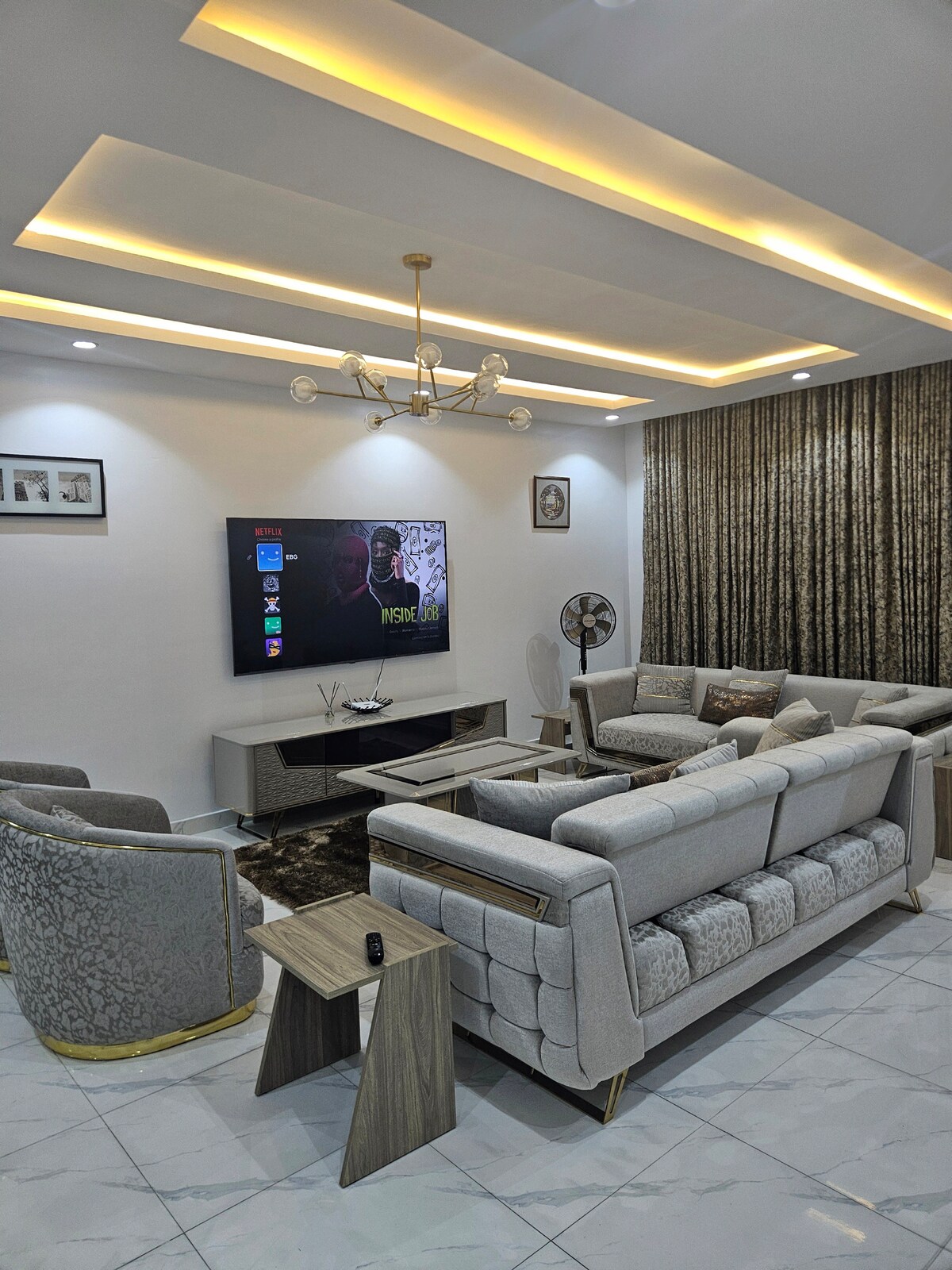 Lekki-Ajah retreat! This spacious 4-bedroom, 4.5-bath duplex is fully furnished for comfort and style. Enjoy open living and dining spaces, a modern kitchen, and cozy bedrooms with ample storage. Relax in a secure, vibrant neighborhood close to restaurants, shops, and beaches. Perfect for families, friends, or business travelers seeking convenience, luxury, and a true Lagos experience. . High-speed Wi-Fi, air conditioning, and modern appliances make your stay convenient and enjoyable.