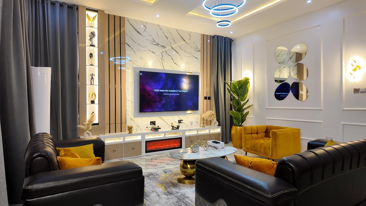 Welcome to TD Luxury Suites, where luxury meets convenience in Lagos. This stylish 4-bedroom apartment offers 24/7 electricity, fast internet, and chic decor for a sophisticated stay. With 24/7 security in a gated estate, you can relax after exploring nearby attractions like movie theaters, shopping malls, restaurants, and bars. The overall decor exudes a trendy and sophisticated style, creating an inviting atmosphere that's perfect for unwinding after a busy day exploring the vibrant city.
