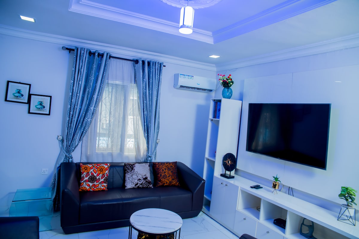 Enjoy this clean, cozy studio in a secure Lekki Phase 1 estate—perfect for solo travelers or couples. The space comes with a comfy bed, smart TV, high-speed Wi-Fi, microwave, kettle, and basic essentials. You'll also have 24/7 power, strong security, and quick access to shops, cafes, and major roads. Whether you're here to relax or work, everything you need is right here.