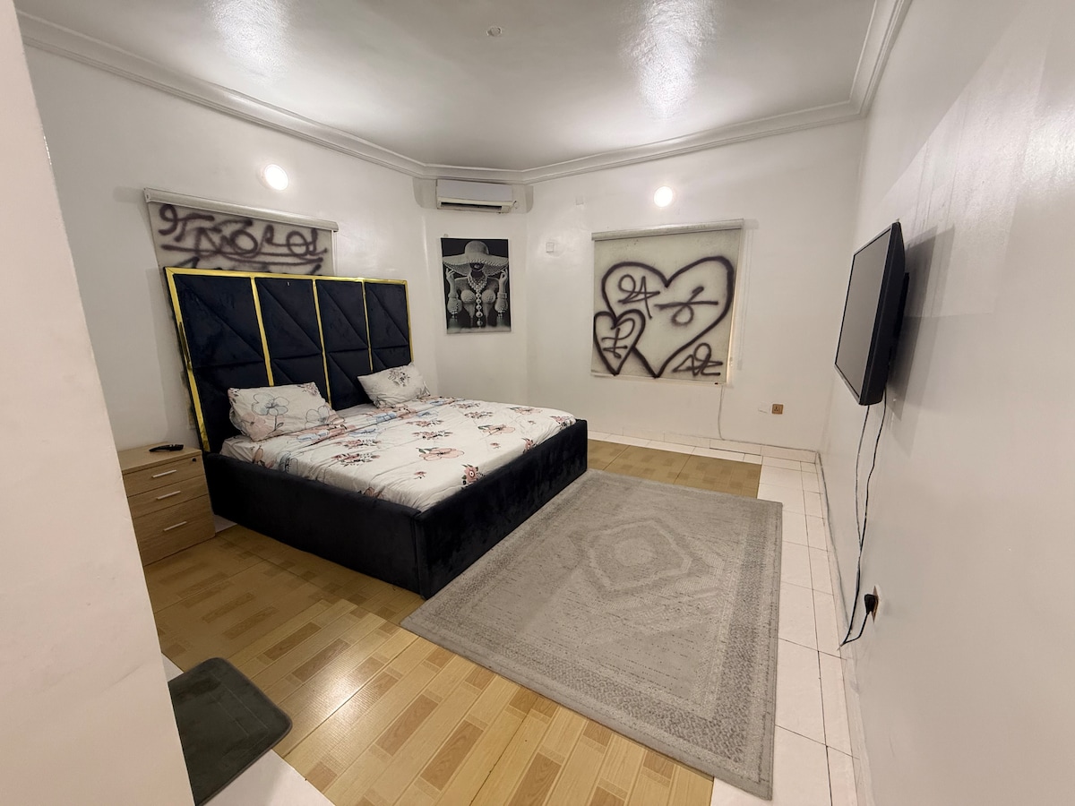You will be close to everything when you stay at this centrally located stylish two bedroom , nestled in a serene neighborhood with 24hours power. This cozy haven features stylish decor and a fully equipped kitchen. Each bedroom is designed with comfort in mind. The bathroom boasts of modern features and a relaxing atmosphere. Enjoy your morning walks in the beautiful, Peaceful, serene and secure estate. Perfect for couples, family, friends or business travelers seeking a memorable stay