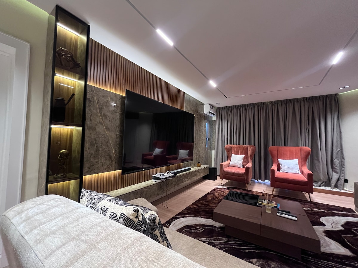 Welcome to Elmstead Luxury Aprt , your stylish retreat in Lekki Ikota. This 2BR/2BA haven offers A/C comfort, a 65″ TV in the living room, 43″ TV in bedrooms, free stable unlimited Wi-Fi, and 24/7 power with inverter & solar. Enjoy smartlock self check-in, free parking, an in-unit washer, and a kids’ bouncing castle. 1 Free cleaning for stays over 5-6 nights. Close to Lekki conservation Center, Mega Chicken, Blackbell & Blemco. perfect for solo travelers, business guests, families, or long stay