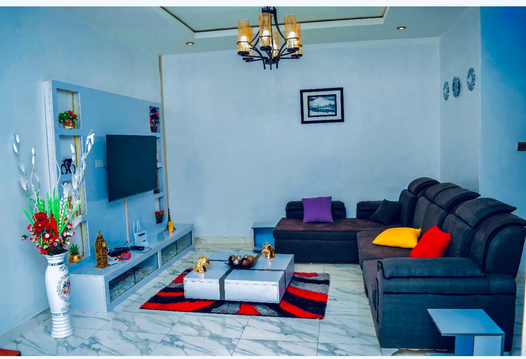 Nestled in a prime location, CasaGialo is a private 2bedroom duplex house , in self compound Gated with own clean water supply,mosquito nets, fully air conditioned , a Garden , balcony and patio . You will have access to all utilities in the house including 2 bedrooms with each ensuite , 2 livingrooms /game room , fully fitted kitchen, laundry area, 3 toilets and 2 baths . 💯 privacy is guaranteed. You will have 24 hrs electricity,air-conditioning CCTV, and has been seasonally fumigated .