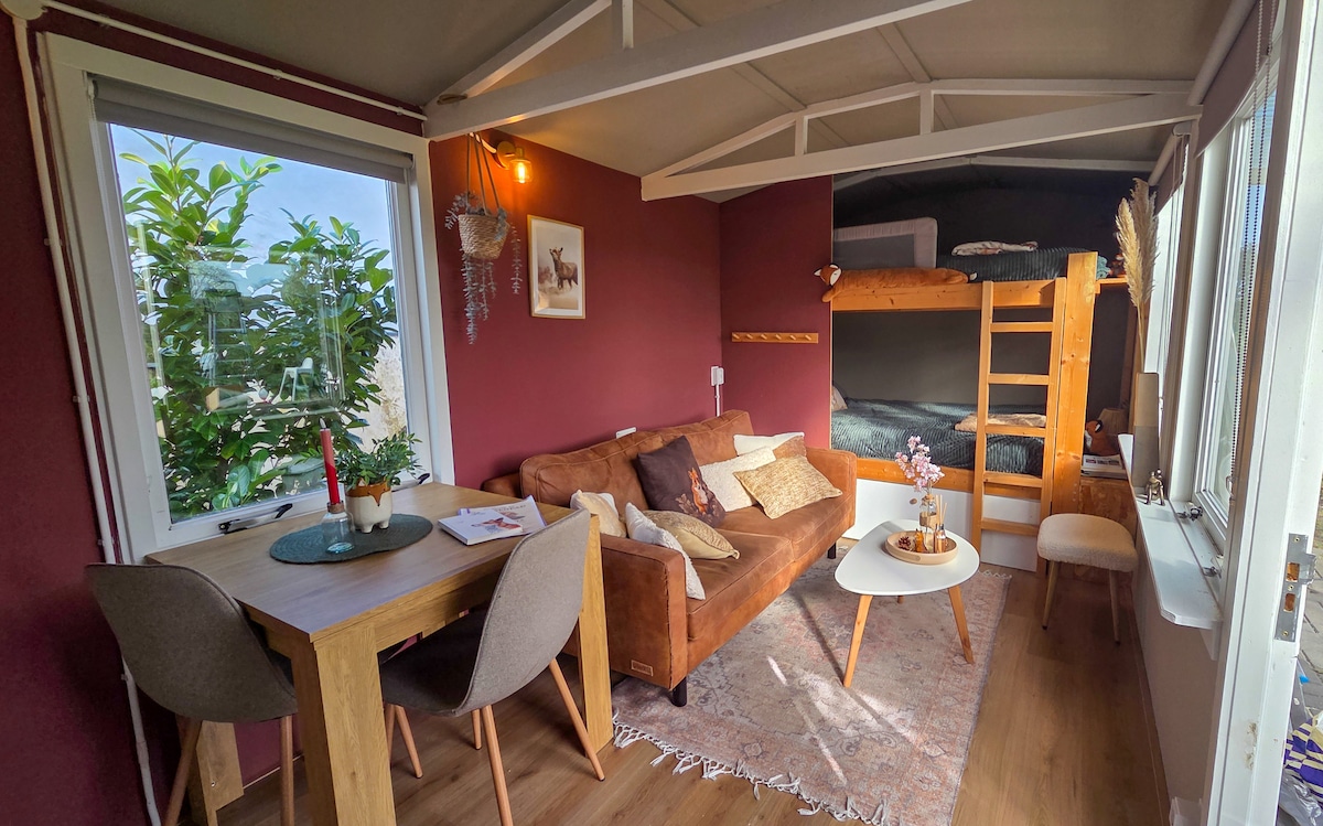 Experience the charm of our spacious and serene studio, nestled in a quiet, green setting on the outskirts of Lelystad—just 45 minutes from Amsterdam. This warm and inviting open space is surrounded by a peaceful garden, offering the perfect environment to relax, unwind, and recharge. Enhance your stay with the ultimate wellness experience in your private wood-fired sauna (€45 per session, approx. 4 hours), ensuring deep relaxation in complete privacy.