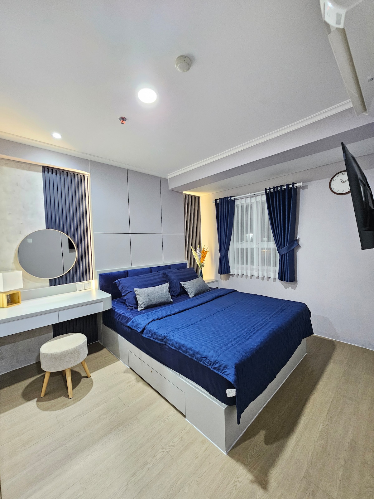 Welcome to our cozy 35m² studio at Dago Suites Apartment Bandung Located on the 11th floor, you'll enjoy stunning city views right from your balcony The studio offers a luxurious King Koil bed, and two additional floor mattresses, perfect for up to 4 guests Stay entertained with our 55-inch 4K Smart TV, complete with Netflix, Disney+, HBO Max, IQIYI, and Viu. Stay connected with fast 20Mbps WiFi. Kindly note that parking —both for motorcycles and cars— is cashless only