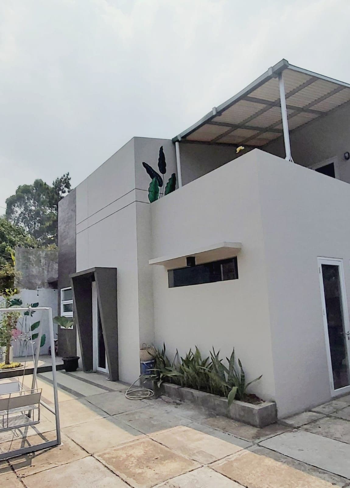 Vila dengan desain yang modern dan unique, bentuk bangunan yang kubus miring dengan kaca besar view langsung ke langit bintang dan bulan. Keren banget untuk foto - foto sosmed, berasa foto di luar negeri. Lokasi di perumahan elite, aman dan nyaman. Terdapat 2 villa bisa untuk 12 orang. Kebun halaman yang luas 2000m2, parkir luas. Banyak cafe disekitarnya.
