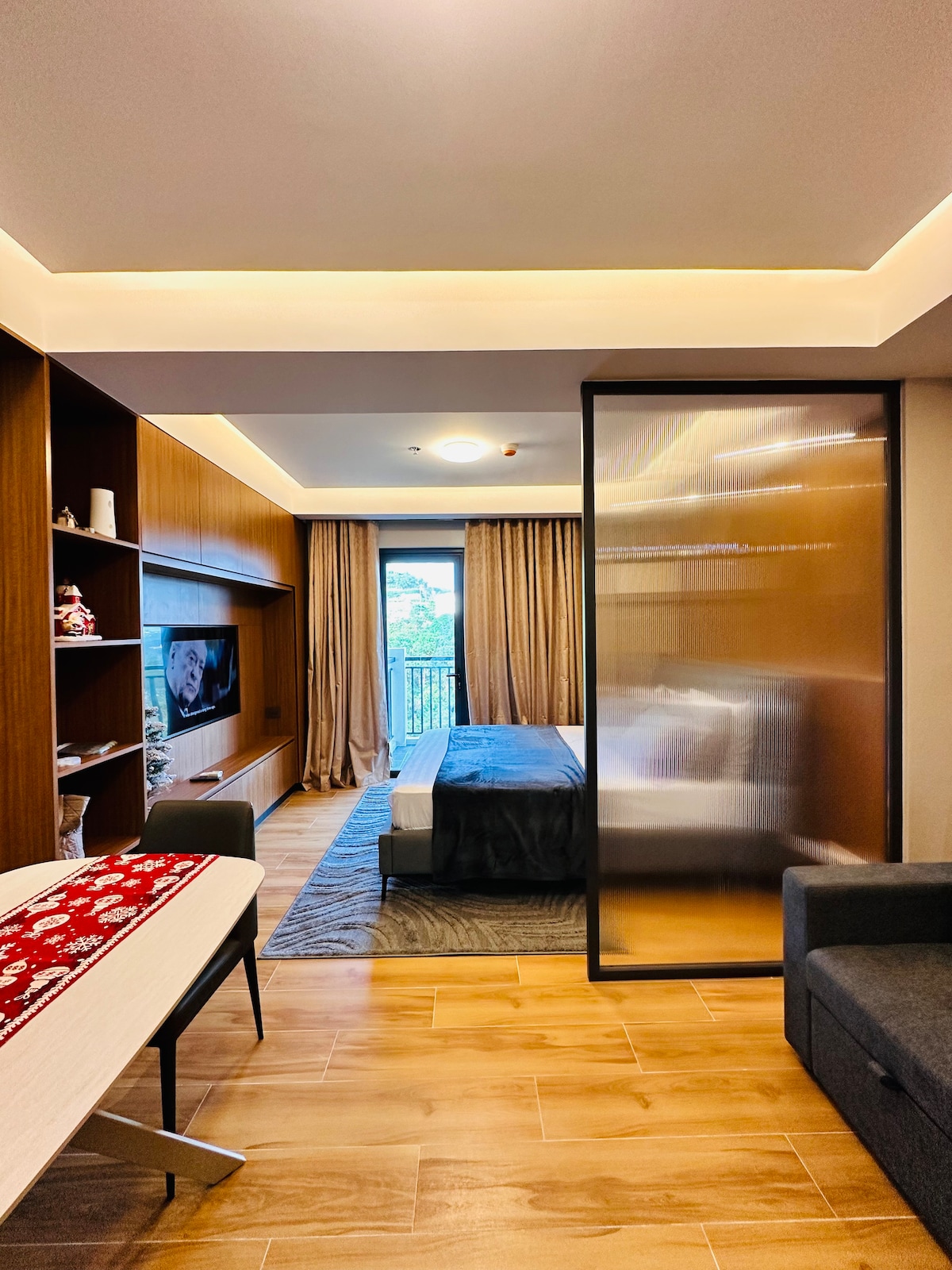 Your Suite 7 at Hotel Casiana Residences Tagaytay, one of our 11 units located in the same building. Unwind in this spacious 40 sqm suite with luxe interior and upscale furnishing. Tastefully decorated, cozy ambience, and complete with all the amenities you need for a convenient and relaxing stay. Enjoy affordable luxury experience with the shared hotel amenities such as heated swimming pool, state-of-the-art gym, kids play area, carousel, spa, restaurant and cafe, pool bar, and free parking!