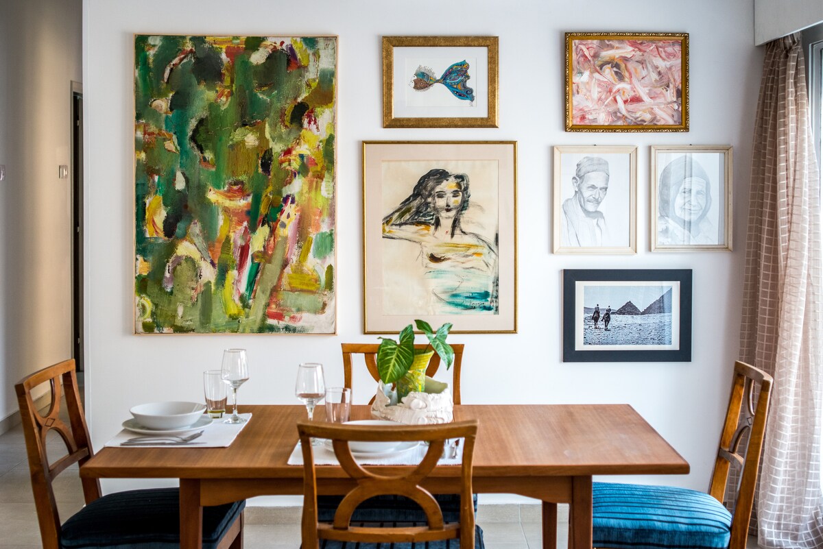 This sunny seafront apartment with easy mobility is located in the heart of the business and leisure district. Designed in the summer '19 by the host Architect in collaboration with a contemporary artist. The fusion of art & architecture in the apartment is felt throughout every object and detail. Intention: To redefine luxury by surrounding guests with collectors' items, green, beautiful colors art so the accommodation becomes an experience.