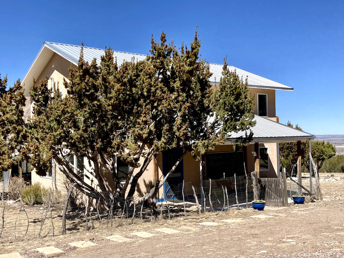 Custom built passive solar home at the north end of the Magdalena Mountains - the best view in town of Magdalena Mountain and the lady of the mountain (though the lady looks her best at the end of the driveway). Property borders the Cibola National Forest, great 360deg views, the sky is magic and ever changing, dark skies at night. Closest neighbor a quarter mile away, but you are still just a five minute drive to the village. Open floor plan, 30mins from Socorro, 90 mins to ABQ airport.