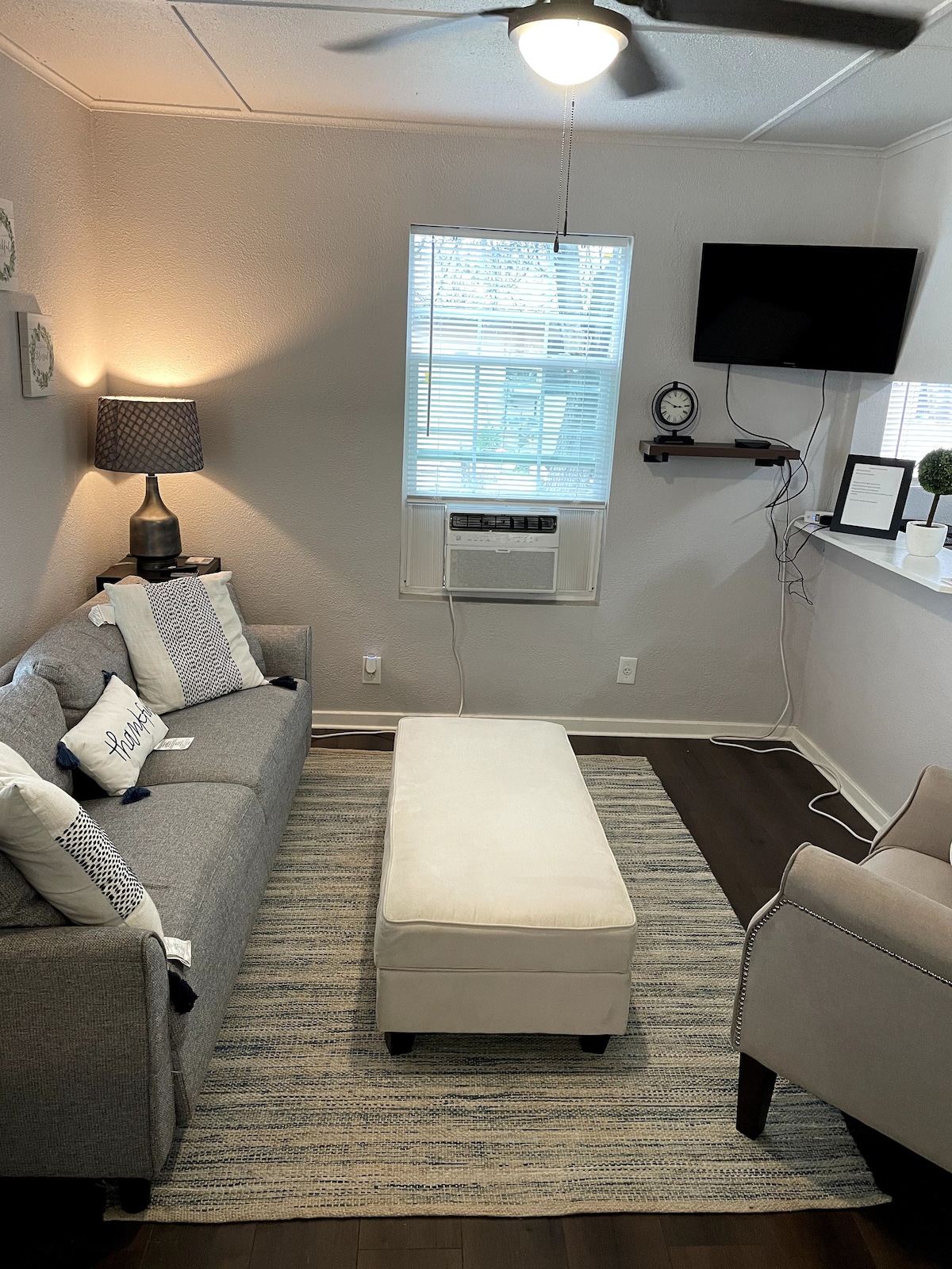 If you’re looking for a quiet and relaxing place to stay you’ve found it. This Villa has had tons of love poured into it to make our guests feel like they never left home. Complete with a homey living space with a sleeper sofa, games, Smart TV with cable, and a stocked kitchen, you can just enjoy your reason for visiting. We are located near the 198 highway for easy on and off access to the Sequoias. We are also a short drive from the downtown area with lots of local restaurants and shopping.