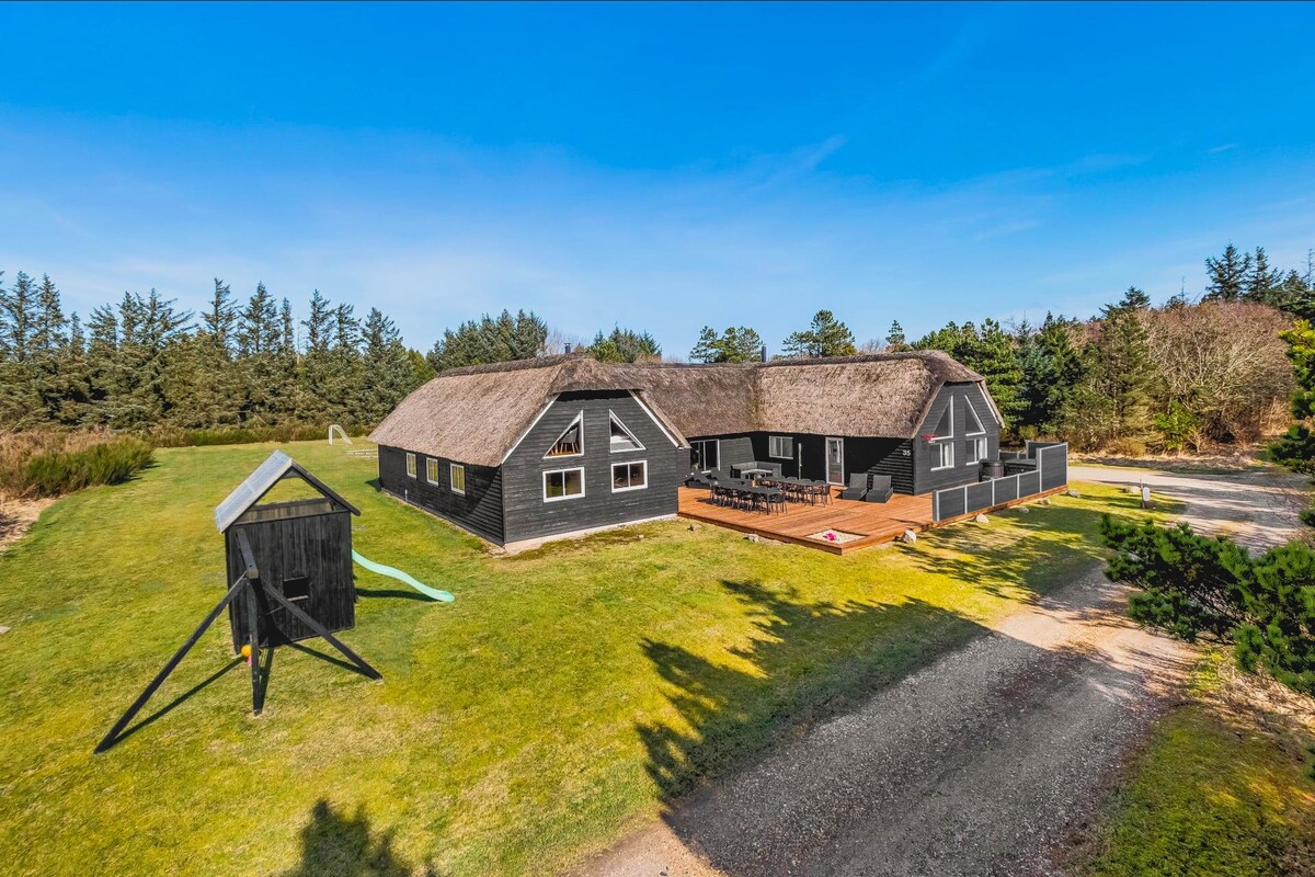 Dette skønne, stråtægte hus ligger helt ugeneret i læ bag klitten lige ud til Vesterhavet og har en vidunderlig udsigt over ådalen og dens rige dyreliv. Her er en helt særlig atmosfære og huset er skønt uanset om I vil hygge jer med familie og venner, kommer for at nyde roen og det vidunderlige landskab eller vil sidde koncentreret med noget arbejde. Der kan altid findes læ lige omkring huset, hvor solen er fra den står op, til aftenen falder på. I kan gå ned at bade på få minutter.