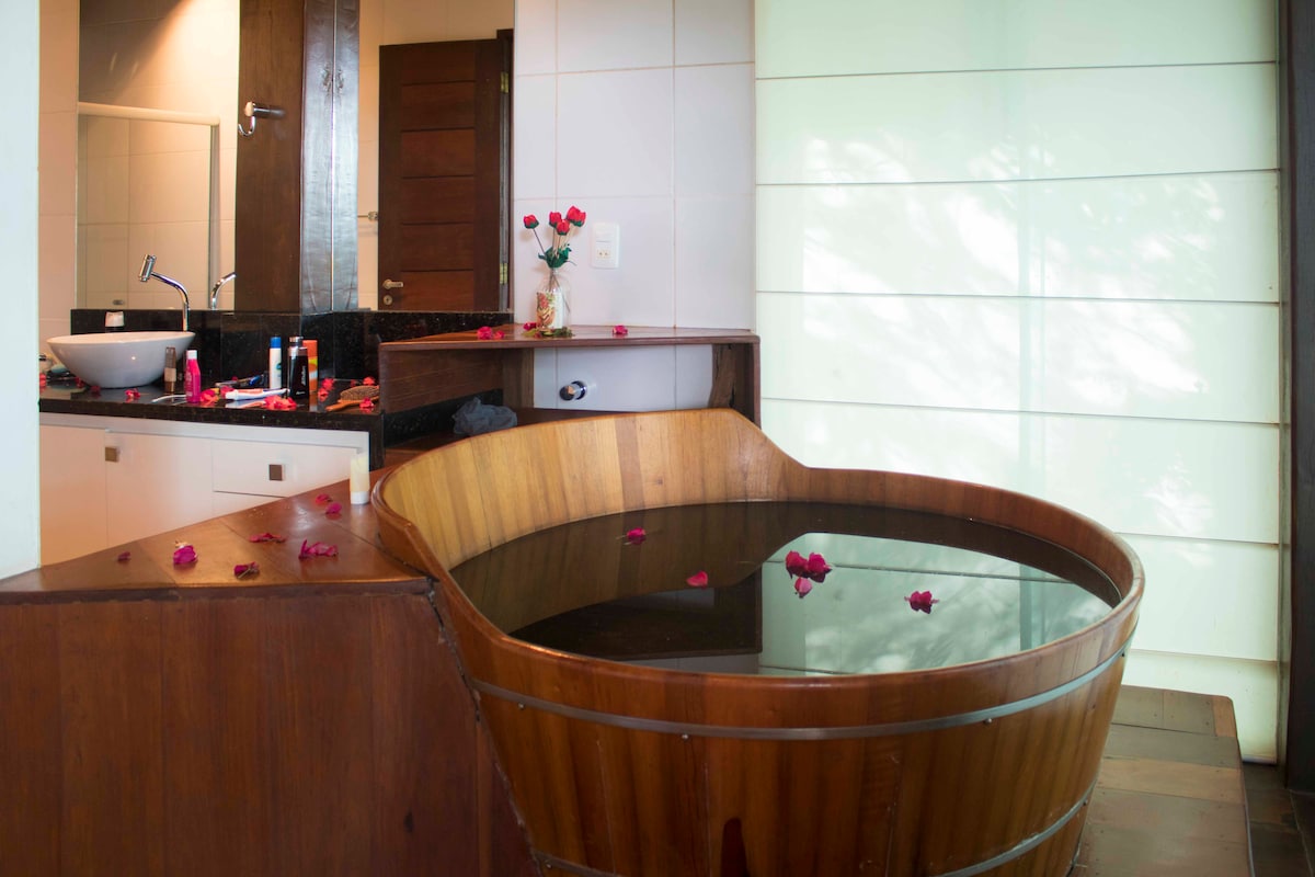 - Suíte com TV e Ar Condicionado: Ambiente confortável e acolhedor para uma boa noite de sono. - Hall de Entrada: Espaço bem-vindo para recepção. - Cozinha Americana com Varandão: Área prática e agradável para preparar refeições e relaxar. - Wi-Fi e Cofres: Conexão Wi-Fi gratuita e cofres disponíveis para sua segurança e conveniência. - Tamanho: 45 m²