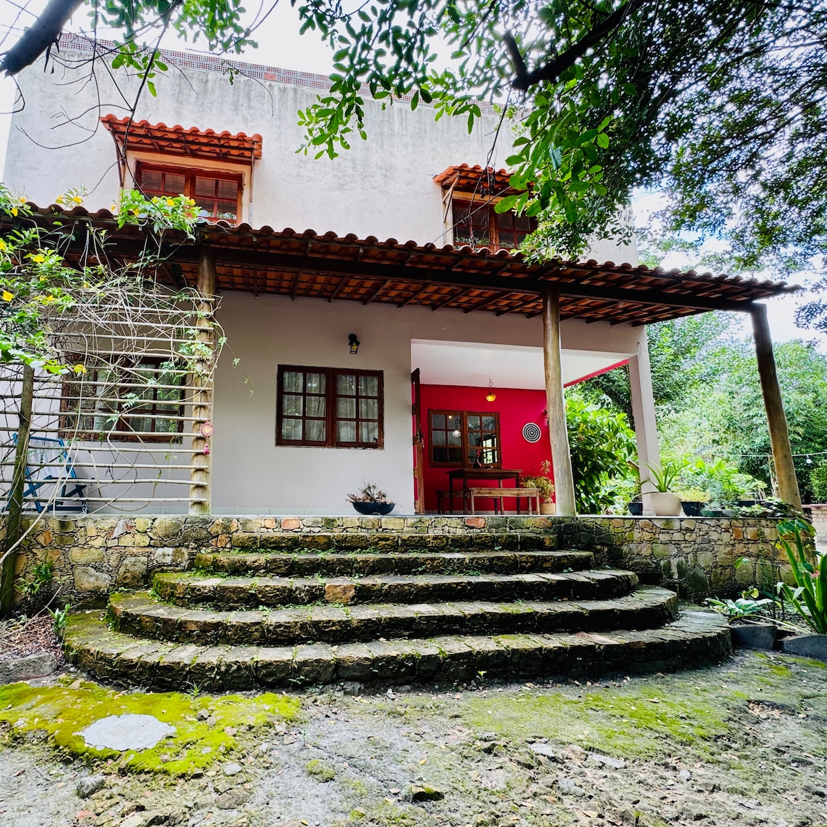 Uma verdadeira casa capônica de 3 andares ideal para familia ou casais! Completa, espaçosa e confortável, perfeita para quem procura tranquilidade num ambiente em meio a natureza. Aqui você vai encontrar calmaria e sossego pois é no bairro da Mata, são 9min de carro da vila e com mercado na rua a 1min a pé. Contamos com dois banheiros, 3 quartos, sendo uma suíte com queen e TV. Cozinha equipada, área de trabalho top + espaço para dois carros e uma linda vista pra serra do Candomba!