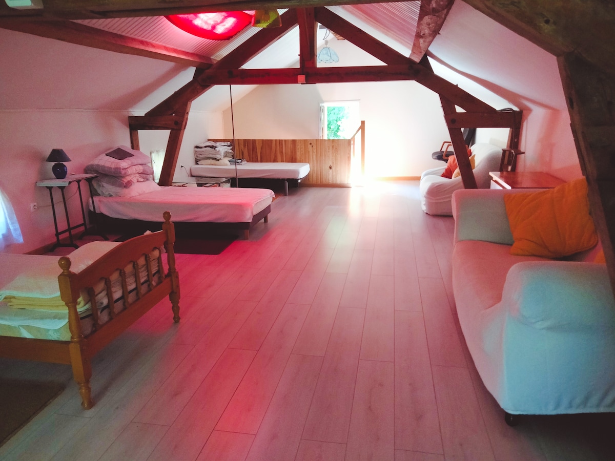 Maison indépendante et neuve de plein pied, haut de gamme. Très lumineuse, dans un cadre champêtre, elle dispose de tout le confort : cuisine totalement équipée, espaces salon, fitness et bureau, balnéothérapie. Piscine, bar-barbecue, portique de jeux, stand de tir au plomb, terrain de pétanque et table forestière disponibles. Grand terrain entretenu, arboré et clôturé, idéal pour les enfants. Chien en liberté dans la propriété, très sociable. Critères Superhost, et une expérience tir proposée.