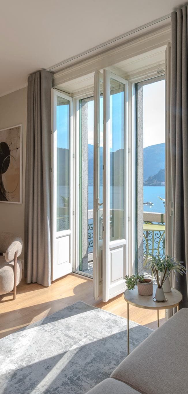 Unobstructed lake views from a beautifully restored 1800s apartment, perfectly positioned on the lakefront promenade of Lenno, Tremezzina. Just 200 meters from the ferry stop with direct connections to Bellagio, Varenna, Villa Carlotta and the medieval walled city of Como. An easy walk to both Villa Balbianello and Villa Balbiano. Unwind with friends over an aperitivo in the elegant living room, featuring original 1920s stucco ceilings, as curtains drift in the lake breeze. Pure Como living.