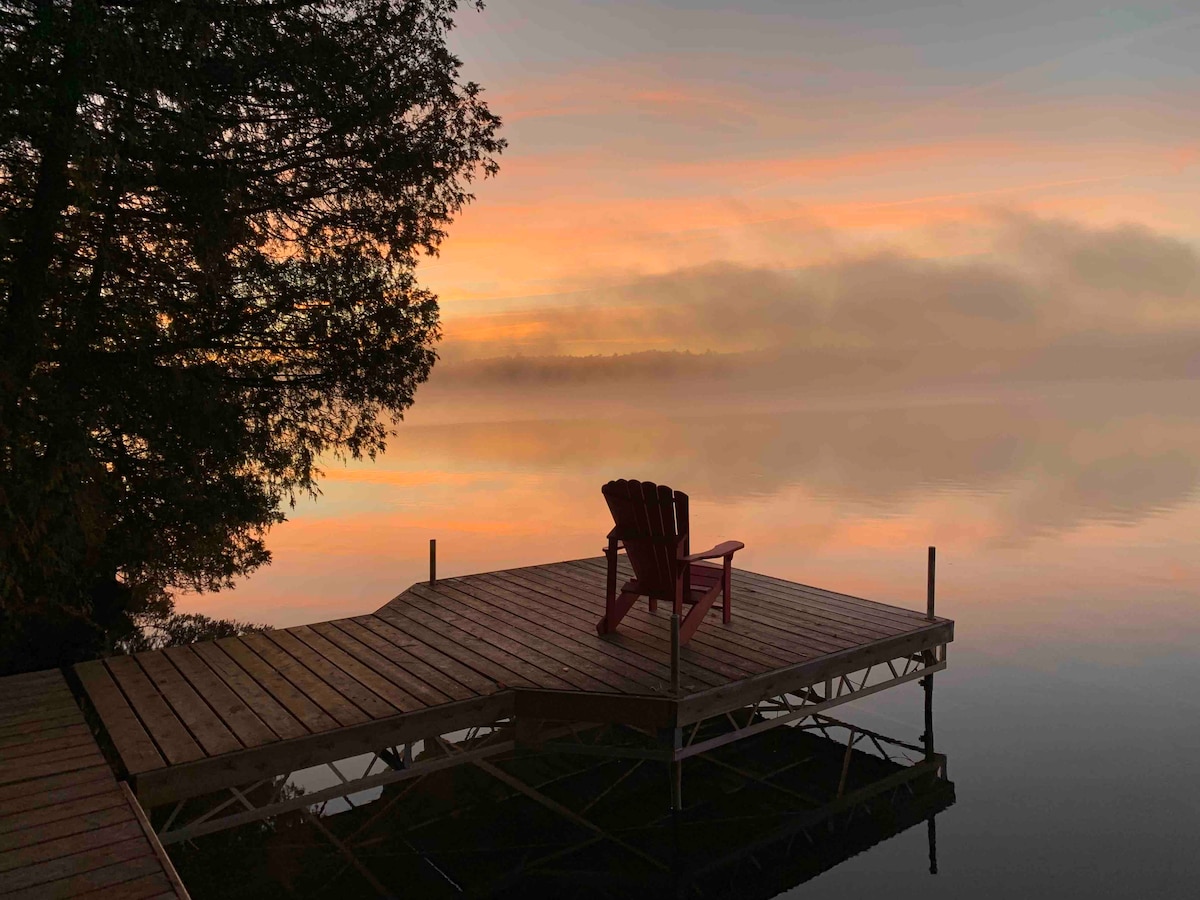 THüRSK Cottage is located on beautiful spring-fed Palmerston Lake. Shallow water entry with sandy bottom makes it a perfect family getaway to unwind, enjoy the peace and relaxation. Surrounded by picturesque nature trails and breathtaking views, this open concept 'A' frame cottage, includes a spacious loft and 2 bedrooms, comfortably sleeping 6. BIG bright windows with gorgeous westerly views are the perfect frame for the vibrant sunsets and nighttime stargazing, unlike any other.