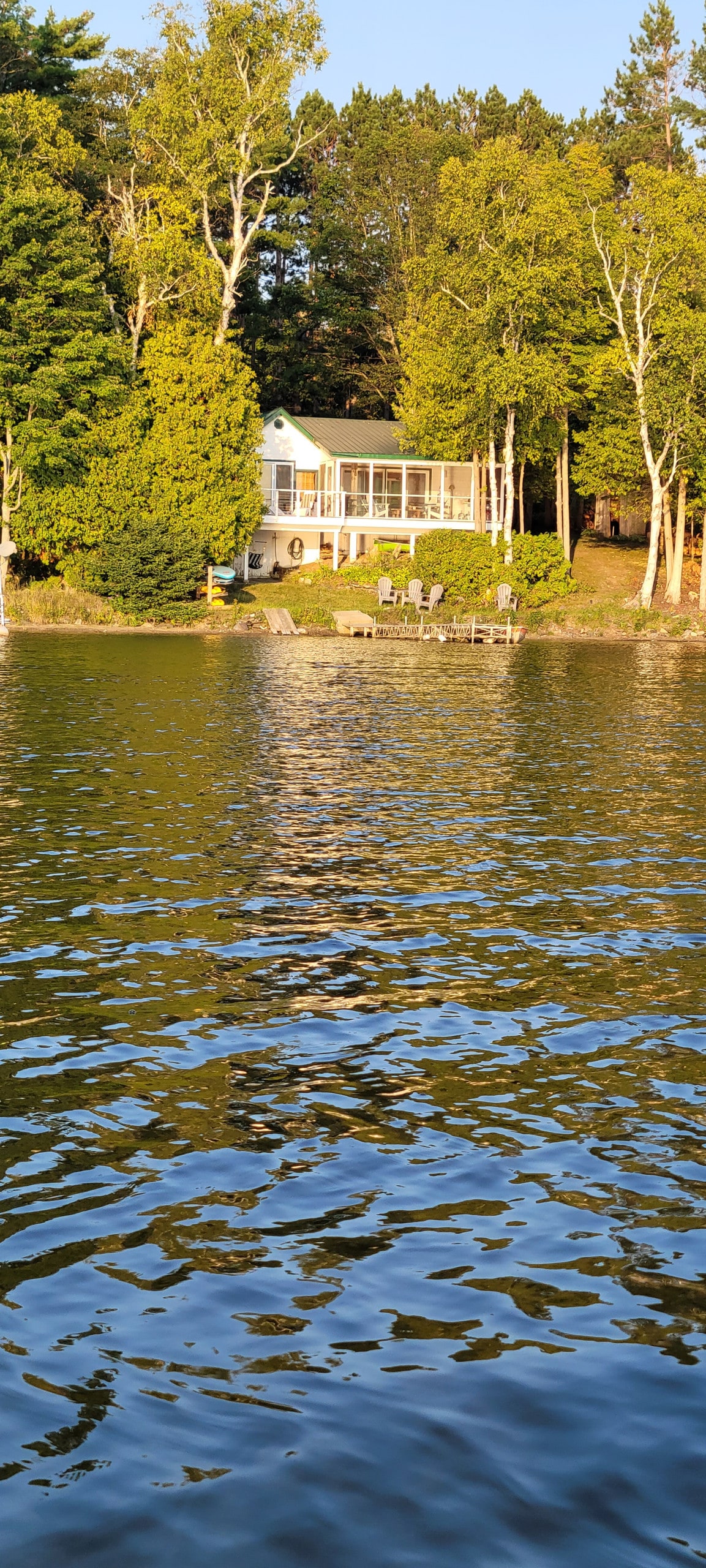 Gorgeous bridal/honeymoon cottage with vaulted ceiling, Malm fireplace, steps lead right into lake, private hot tub. Photographed by photographer voted best in Maui 3 years in a row. This is a very special retreat for two. Nestled on Bobs Lake, away from the bustle of the city (the stars will amaze). This is our bridal cottage when we host weddings. Imagine waking up to the sounds of loons just feet away and the amazing lake view that is just outside your all glass front cottage,.