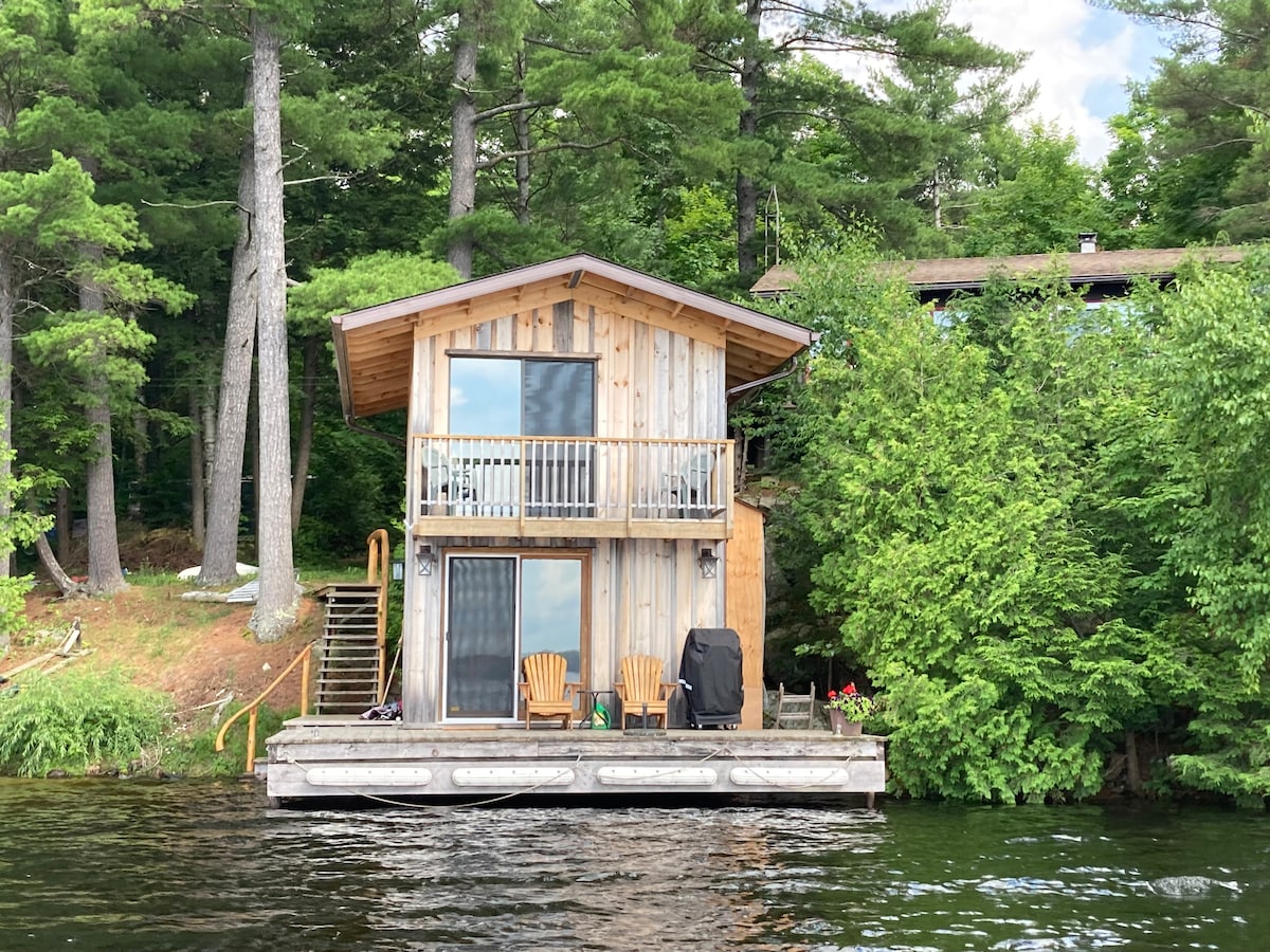 We operate from June 1 -Nov 30. Previous guests are welcome to inquire about winter visits. Thank you for a wonderful 2025 season! Relax in our private romantic retreat surrounded by water, rocks, trees and wildlife. Sand beach, water toys, dock and suite with walkout to deck and BBQ, hot tub and sauna. Private walking trail is 1 km through woods and a meadow with a small frog pond - forest bathing! Suite is cosy comfort. Sound system, two Smart TVs, office or kid's bedroom and full ensuite.
