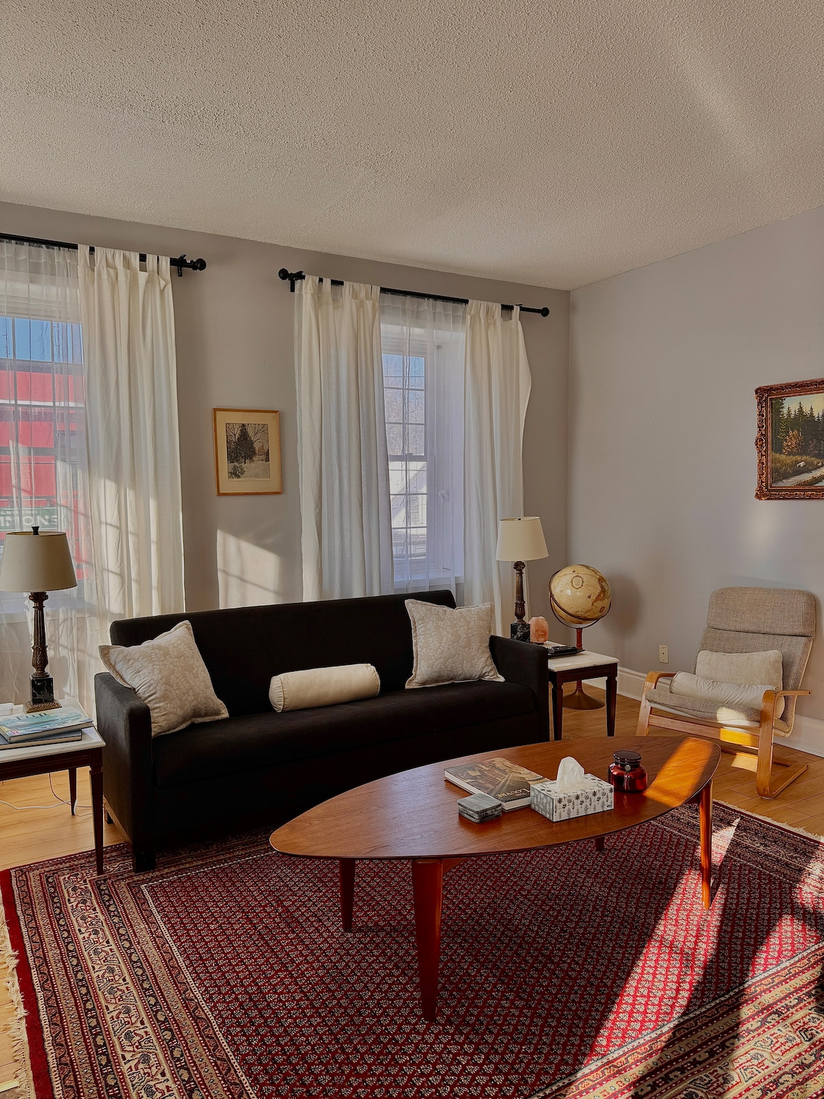 Escape the noise and unwind in a peaceful private suite on a country property along the Moira River in Tweed, Ontario. Set on 3.2 acres of riverside land, this cozy guest suite is a quiet place to slow down, explore nature, and enjoy rural Ontario. Wake up to birds, watch the river drift by, and relax under the stars. The suite is in the lower level of my home with a private entrance so guests can come and go freely. Inside you’ll find a comfortable space to relax after exploring the area.