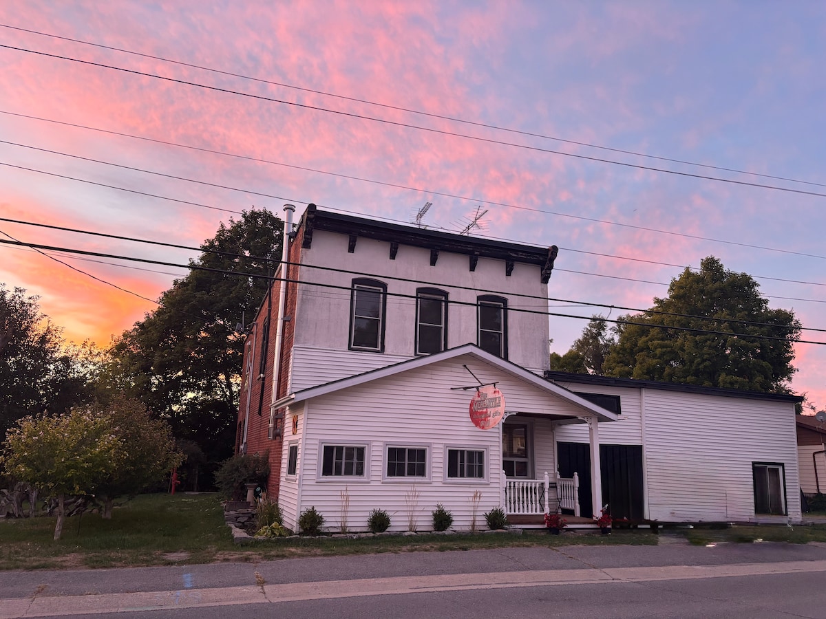 Spotless & well equipped private suite with crisp white sheets & towels, super comfortable queen bed & lounge chairs, large bathroom and a beautiful bar. Located 12 minutes east of Picton, minutes away from Lake on The Mountain, County Cider Company, Cressy Mustard , Waupoos Winery + Stellas Eatery. A short bike ride down the road to County Cider Company. Bedding, towels + extra pillows provided, plus a fully equipped kitchenette with high quality essentials and board games.