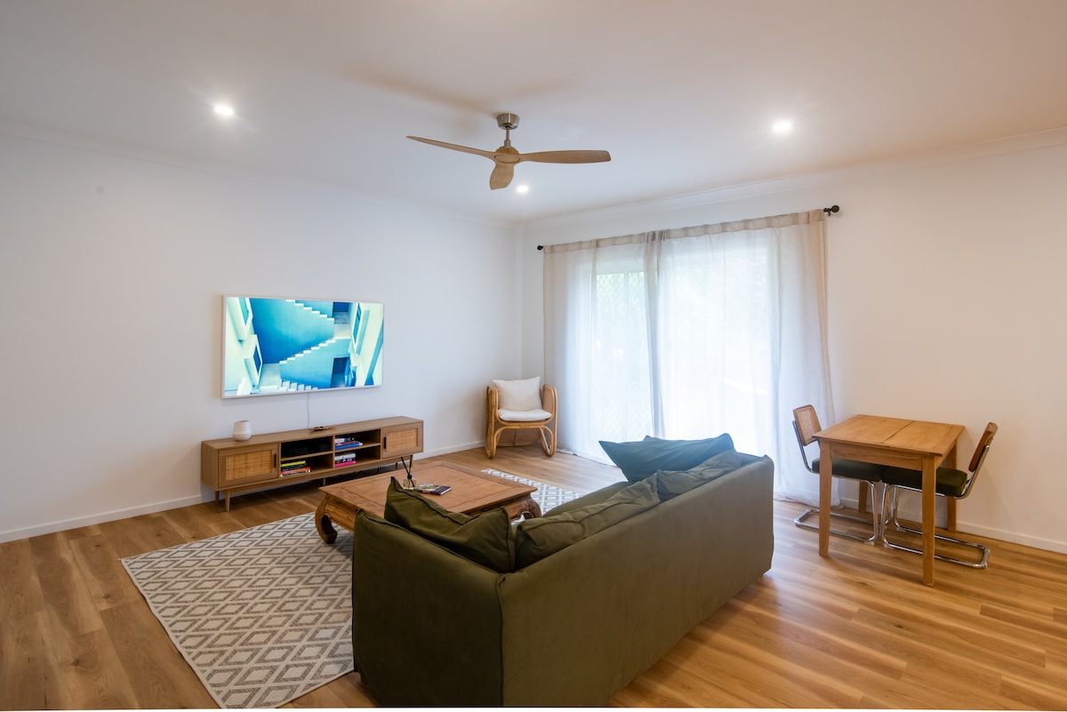We’re delighted to welcome you to our beautiful ground floor apartment. It is an easy 300 meter walk to Epiq Marketplace - with shops including Woolworths/BWS - and just a 4 minute drive to the beach and gorgeous Lennox Village with its fabulous cafes, boutiques and outstanding restaurants. Don’t pack bulky beach towels or a beach umbrella, as they are supplied! Come visit! There’s building construction across the road from us but please park in our driveway when you return from your day trips!