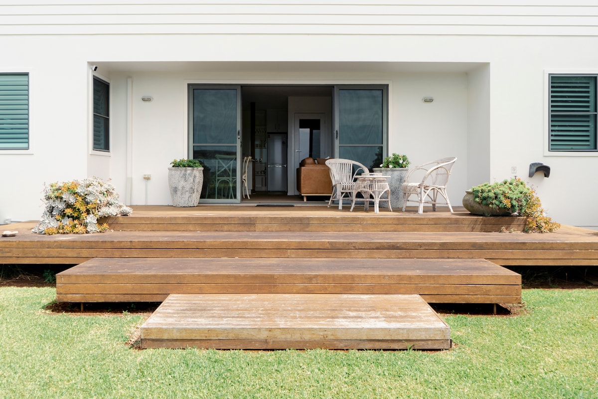 Welcome to your home away from home! As soon as you arrive, you understand why Anne’s on the Green has been a firm guest favourite. Situated 5 minutes from the heart of Byron Bay, perched atop of Byron Bay Golf Course with a view over the green, this gorgeous two-bed guest house offers all the tranquility you need.. A stunning architectural design, Anne on the Greens has views for days, catches all the breeze, and provides a calm that your holiday needs. Furry friends are welcome too!