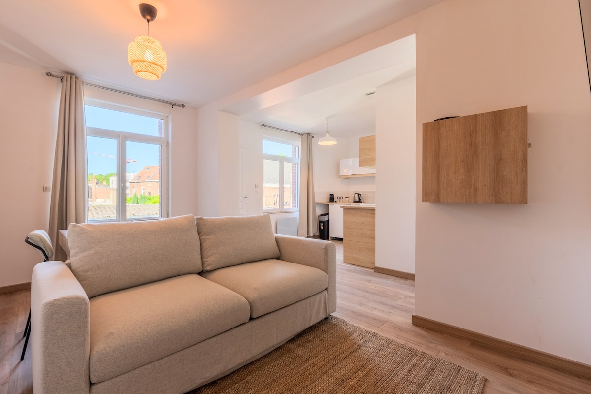 💙 L’Azur – Élégance & Sérénité à Lens Bienvenue à L’Azur, un appartement moderne et apaisant idéal pour un week-end match, une escapade ou un déplacement professionnel à Lens. Profitez d’une chambre confortable avec literie de qualité, d’un salon lumineux, d’une cuisine équipée, d’une salle d’eau moderne et d’un agréable balcon pour prendre un café ou se détendre. ✨ Posez vos valises et profitez pleinement de votre séjour à Lens.