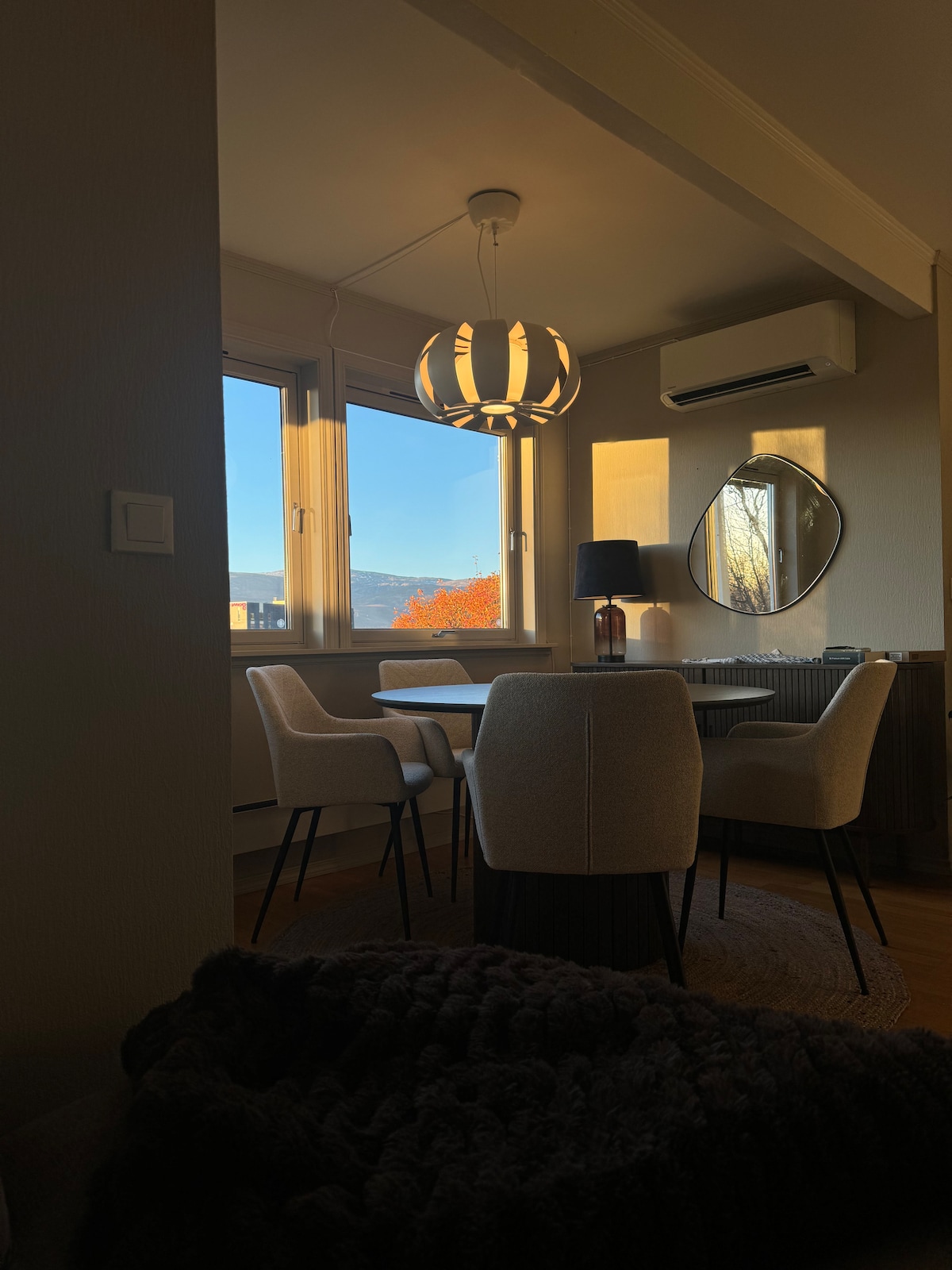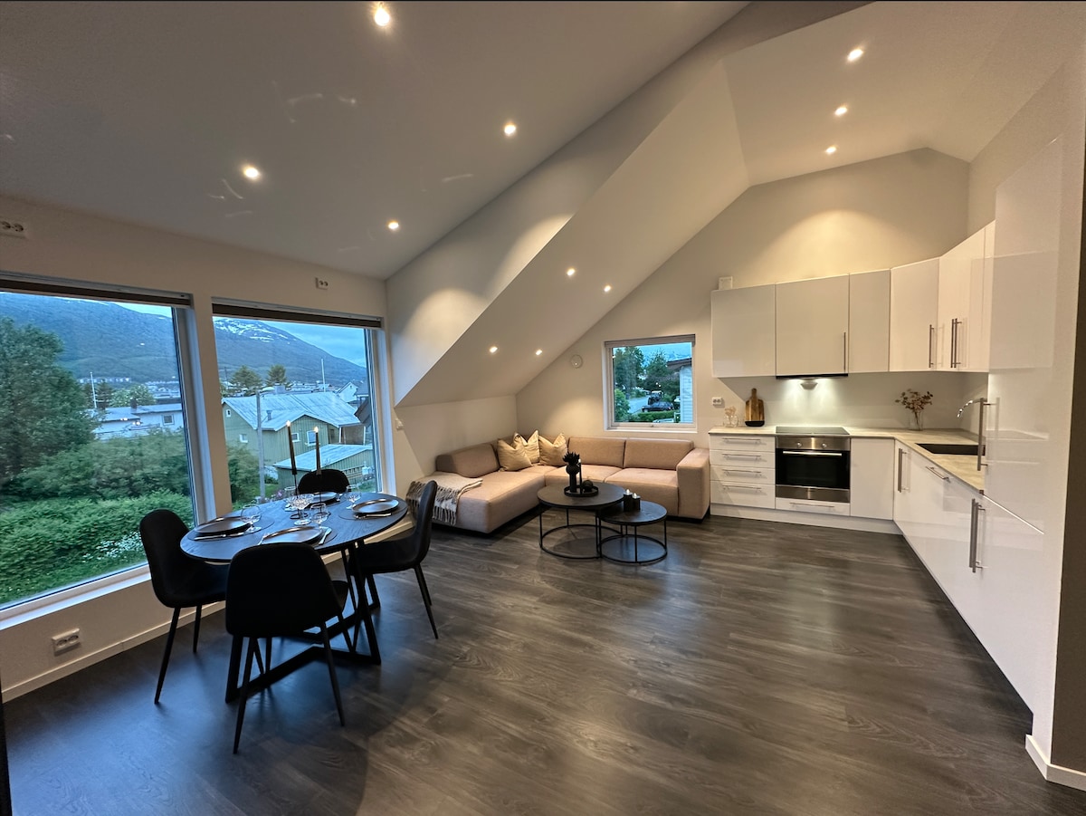 Se nordlyset danse over himmelen fra egen markterrasse! Og treffe reinsdyr i nabolaget! Mørketiden fra slutten av november ❤️ Vi bor like ved Tromsø sentrum, med gode bussforbindelser noen minutter unna. Er kun fem minutter til flyplass. Perfekt utgangspunkt til å oppleve alt Tromsø har å tilby Leiligheten ligger like ved turløype, sommerstid er det mange flotte turstier i området, og på vinteren er det opplyst turløype som kan brukes både med ski og til fots En gratis parkeringsplass.