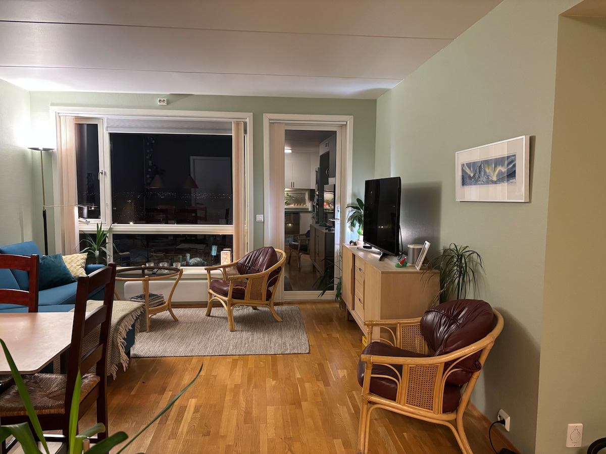 The apartment is located in the amazing Folkeparken, the largest public park and protected area on the island. The park has hiking trails, and cross country skiing in the winter. Telegrafbukta is located within the park, witch is known as a great place to experiance the northern lights. Other usefull amenities closeby include: gym and busstops 200 meters, Tromsø museum 550 m, grocery store 1,2 km and city center is within walking distance. Experiance the nature and urban living in close harmony