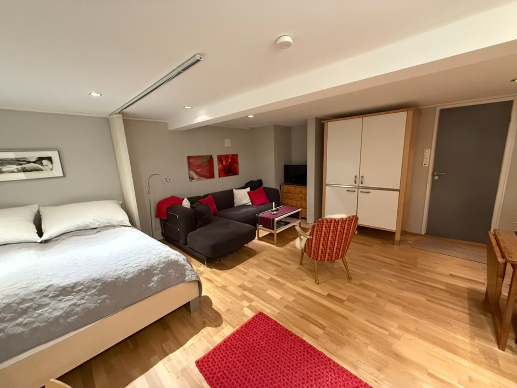 All inclusive. towel etc. Fresh, cold drinking water from the tap. 1 min to bus stop. 5 min bus to the city centre. 15 minute walk to the city centre. By agreement and fee of 300 NOK possibility to use sauna with snow bath. One double bed 120 meters wide and the other 140. For bookings after 24.11.25. A free bacalao meal or one fish cake meal for free, if desired, for stays over three days.